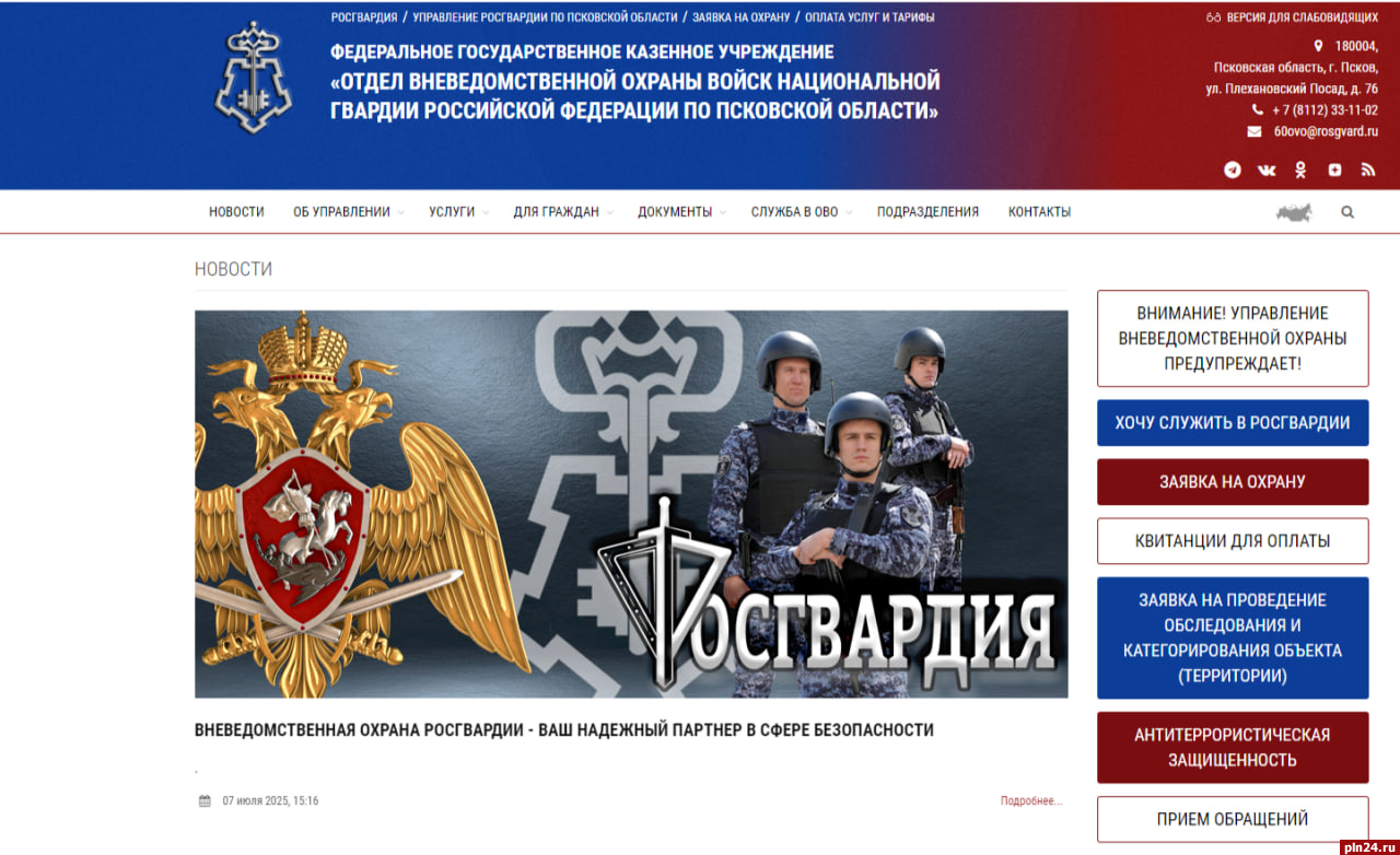 Главное управление вневедомственной охраны Росгвардии запустило новый онлайн-сервис «Антитеррористическая защищенность», доступный на официальных сайтах региональных подразделений по всей стране. Ресурс призван значительно упростить и повысить эффективность обеспечения антитеррористической защищенности объектов для организаций и собственников, на которых данная обязанность возложена законодательством, сообщили Псковской Ленте Новостей в пресс-службе управления Росгвардии по Псковской области.