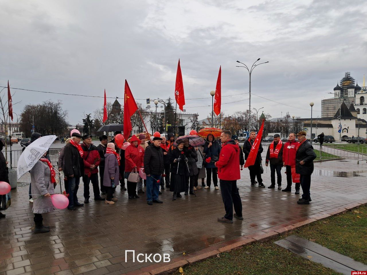В Псковской области прошли политические мероприятия, посвященные 108-й годовщине Великой Октябрьской социалистической революции, сообщается в Telegram-канале персека Псковского обкома КПРФ Петра Алексеенко.
