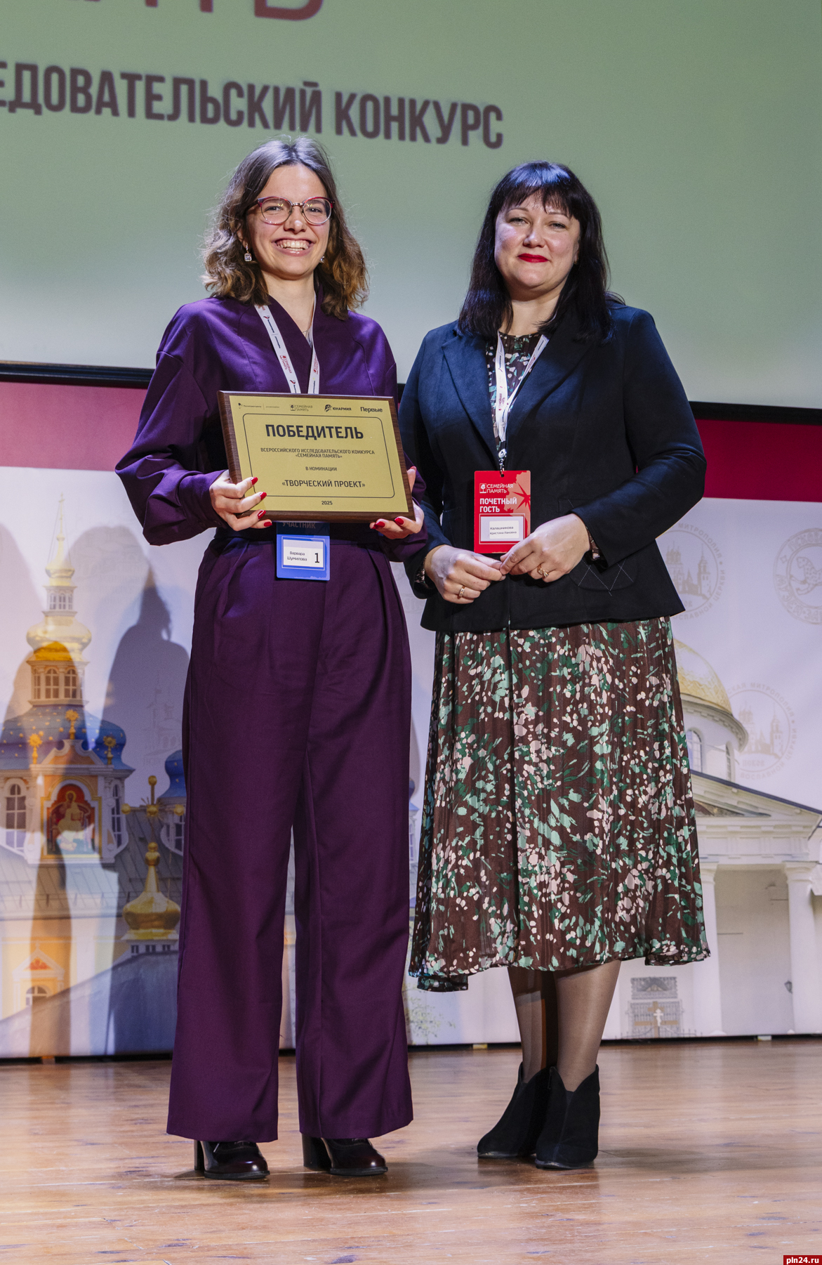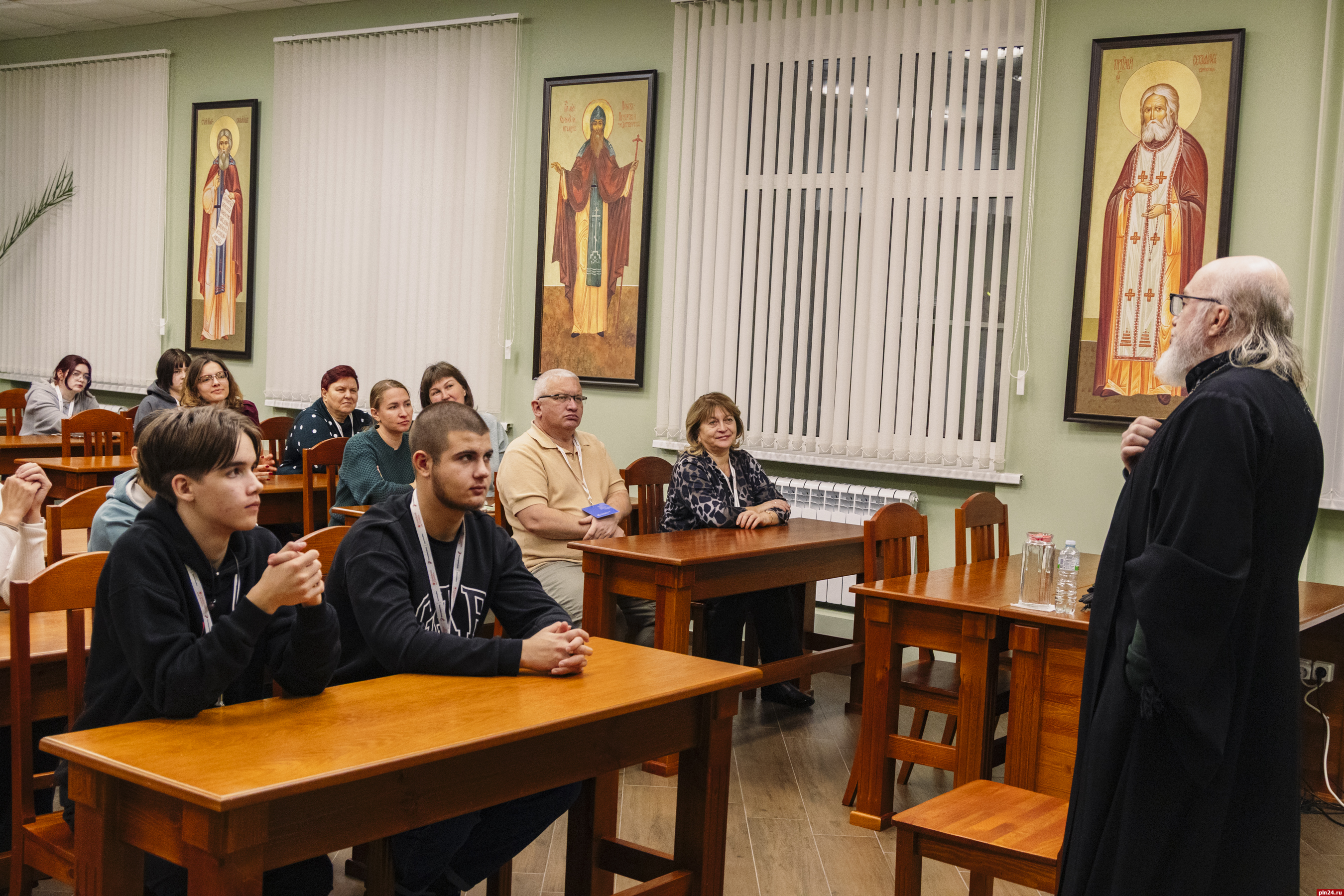 Помимо защиты проектов, финалисты также посетили просветительские лекции, экскурсии по Псково-Печерскому монастырю и храму Кирилла и Мефодия. Важной частью программы стали встречи с ветеранами и военнослужащими СВО.