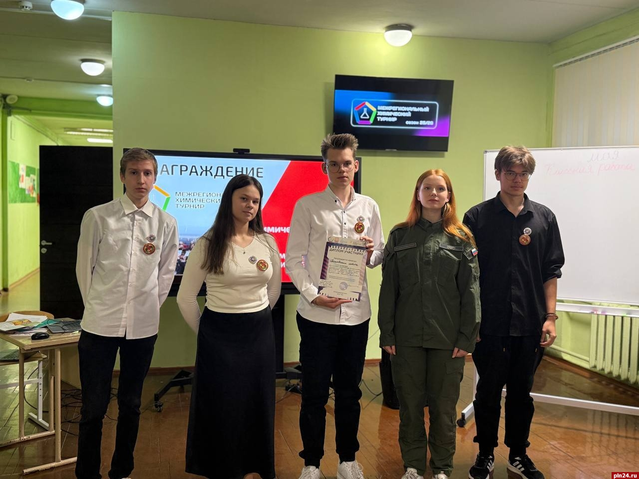 В химическом турнире приняли участие шесть команд из Псков и Великих Лук («Гуманитарный лицей», детские технопарки «Кванториум Псков» и «Кванториум Великие Луки», лицей «Развитие», лицей №4 «Многопрофильный», Средняя общеобразовательная школа №16 имени Героя России Алексея Воробьева).