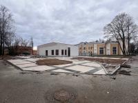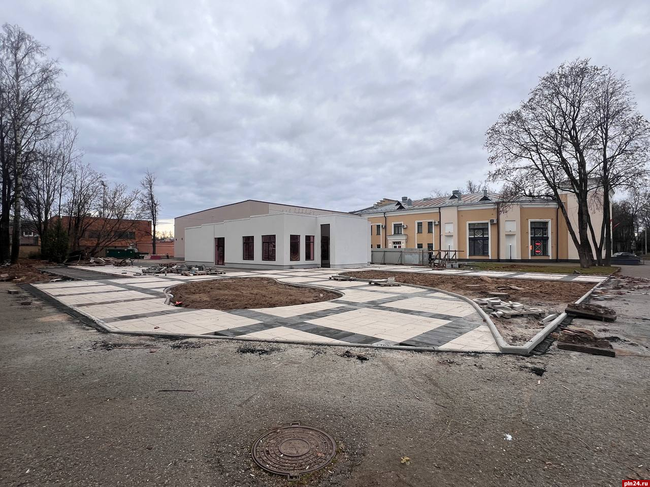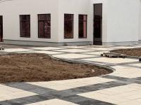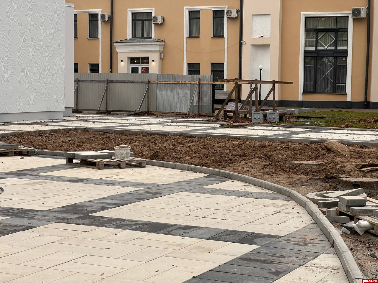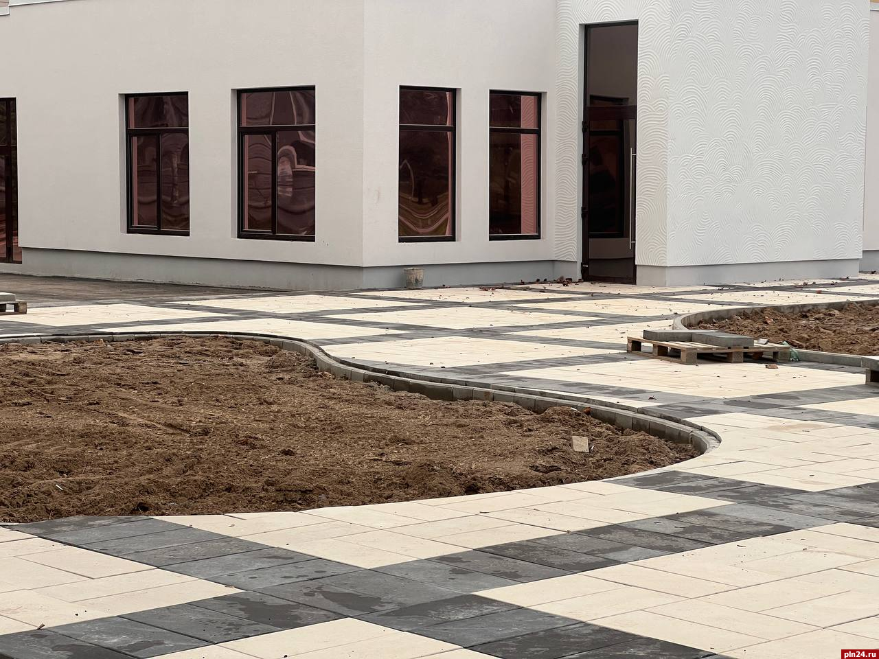Вокруг здания убрали забор, благодаря чему стала видна новая уложенная площадка.