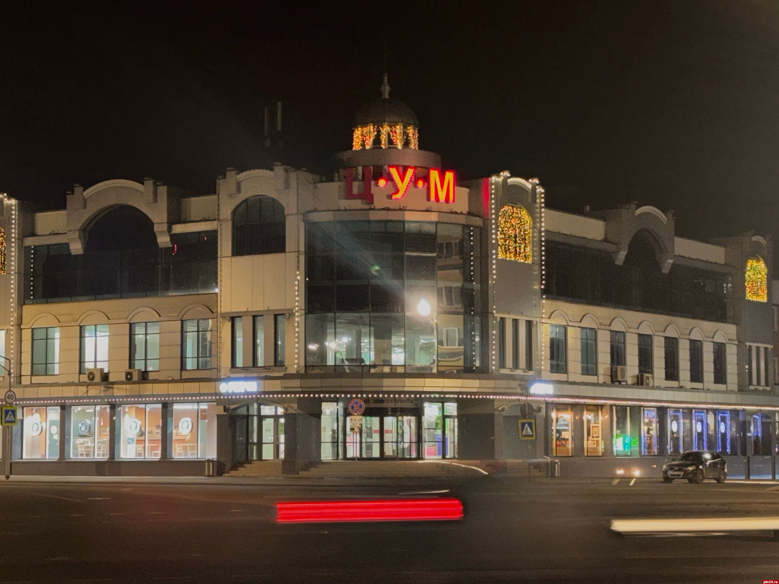 Одна из букв погасла на здании ЦУМа в Пскове, передаёт корреспондент Псковской Ленты Новостей.