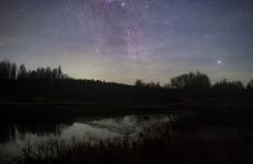 «Если выход с хорошим обзором к самому Мальскому озеру достаточно сложной найти (есть только один проем, откуда обзор только на юго-запад), то на небольшом озере вблизи деревни Лисьи Горки, можно отыскать хороший обзор почти во все стороны, но в основном на восток и запад. В принципе, оттуда можно неплохо снимать, там полярные сияния с отражением их в воде», - написал Пётр Митрофанов.