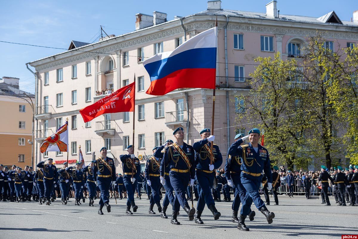 А центральные события этого года, естественно, происходили 9 мая. В центре Пскова состоялся Парад Победы. В предыдущие годы парады в Псковской области отменяли по соображениям безопасности.