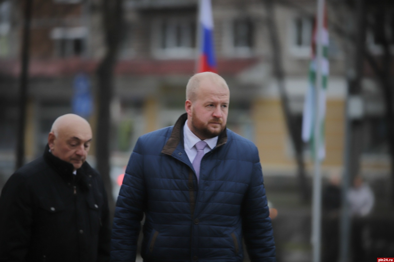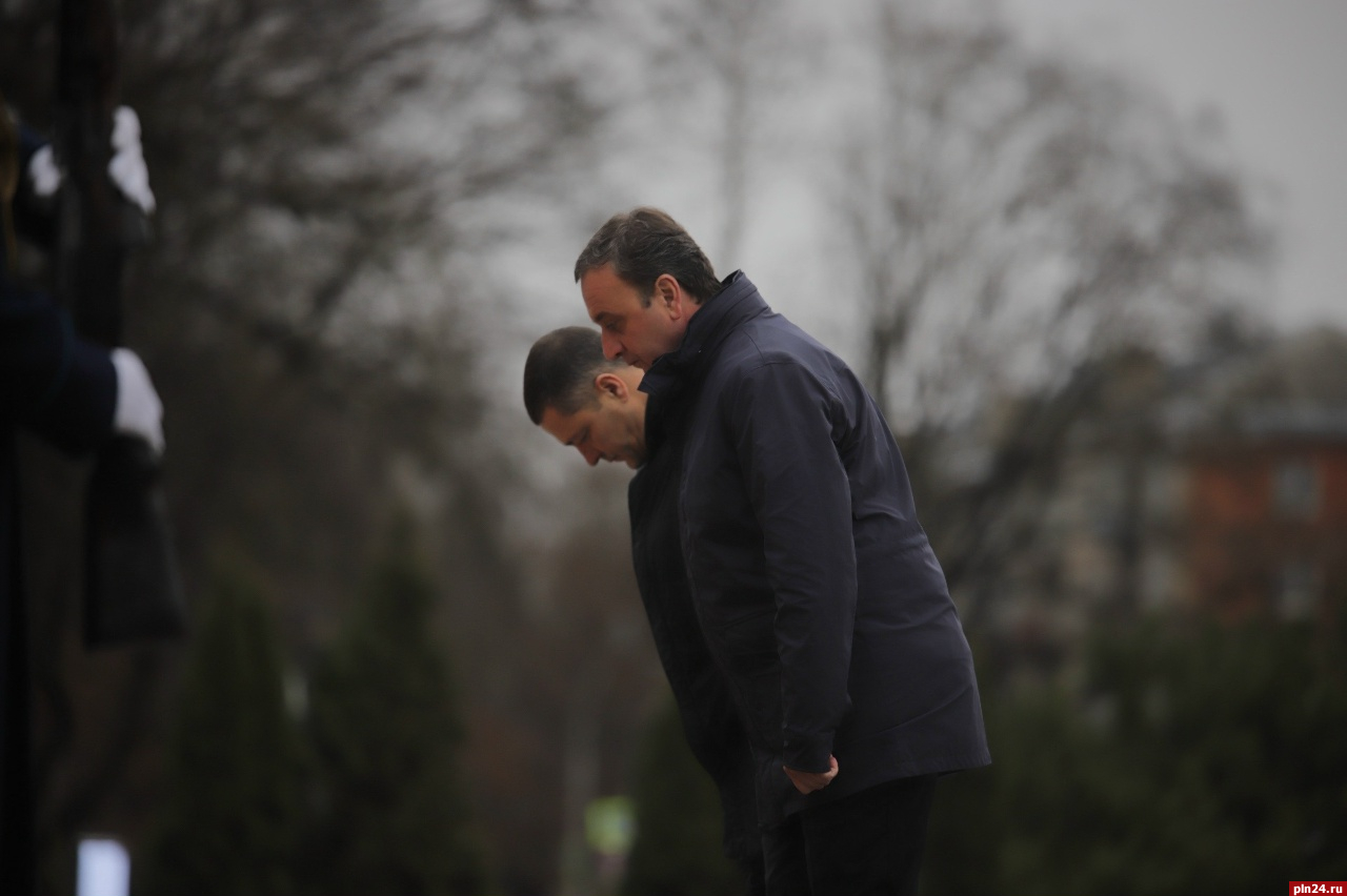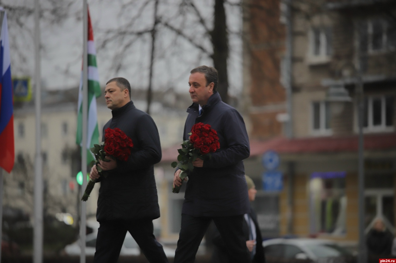 Губернатор Псковской области Михаил Ведерников и премьер-министр Республики Абхазия Владимир Делба возложили цветы к могиле Неизвестного солдата в Пскове 17 ноября, передает корреспондент Псковской Ленты Новостей.