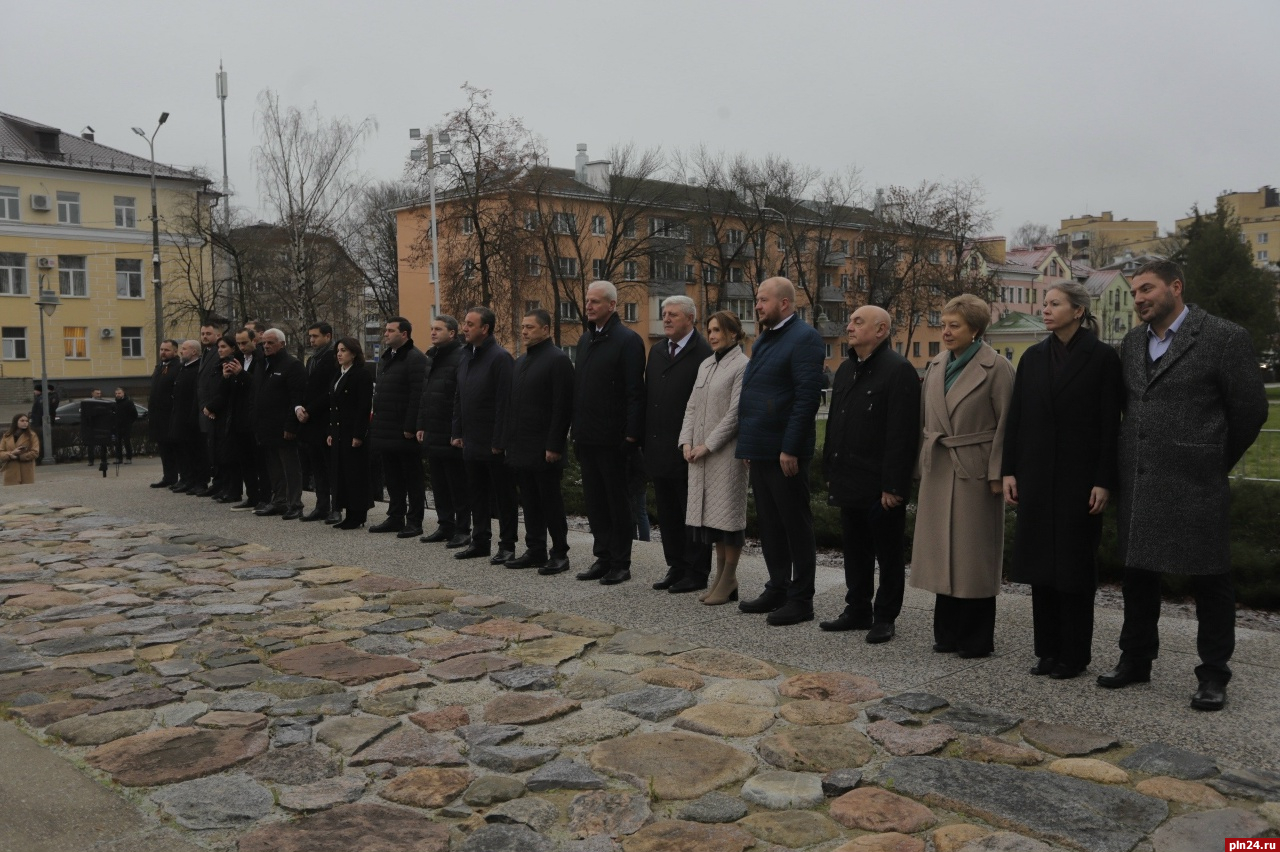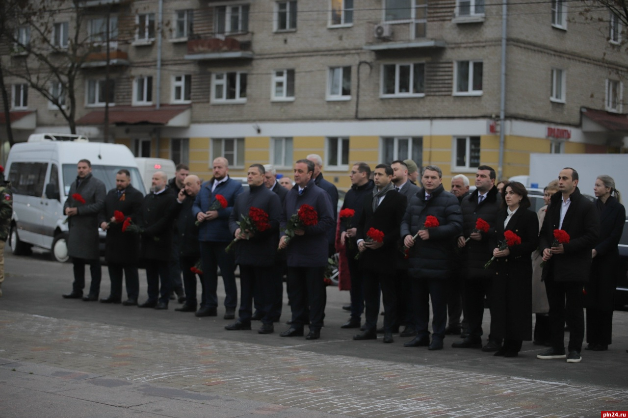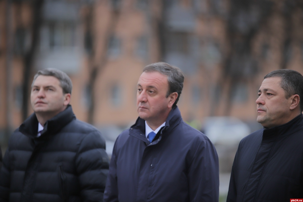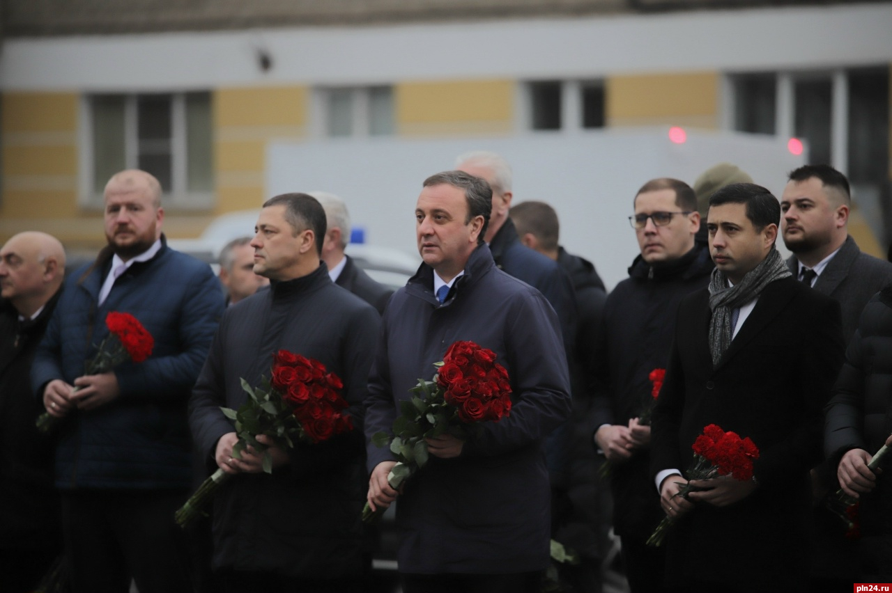 Губернатор Псковской области Михаил Ведерников и премьер-министр Республики Абхазия Владимир Делба возложили цветы к могиле Неизвестного солдата в Пскове 17 ноября, передает корреспондент Псковской Ленты Новостей.