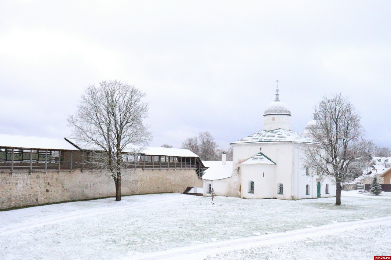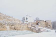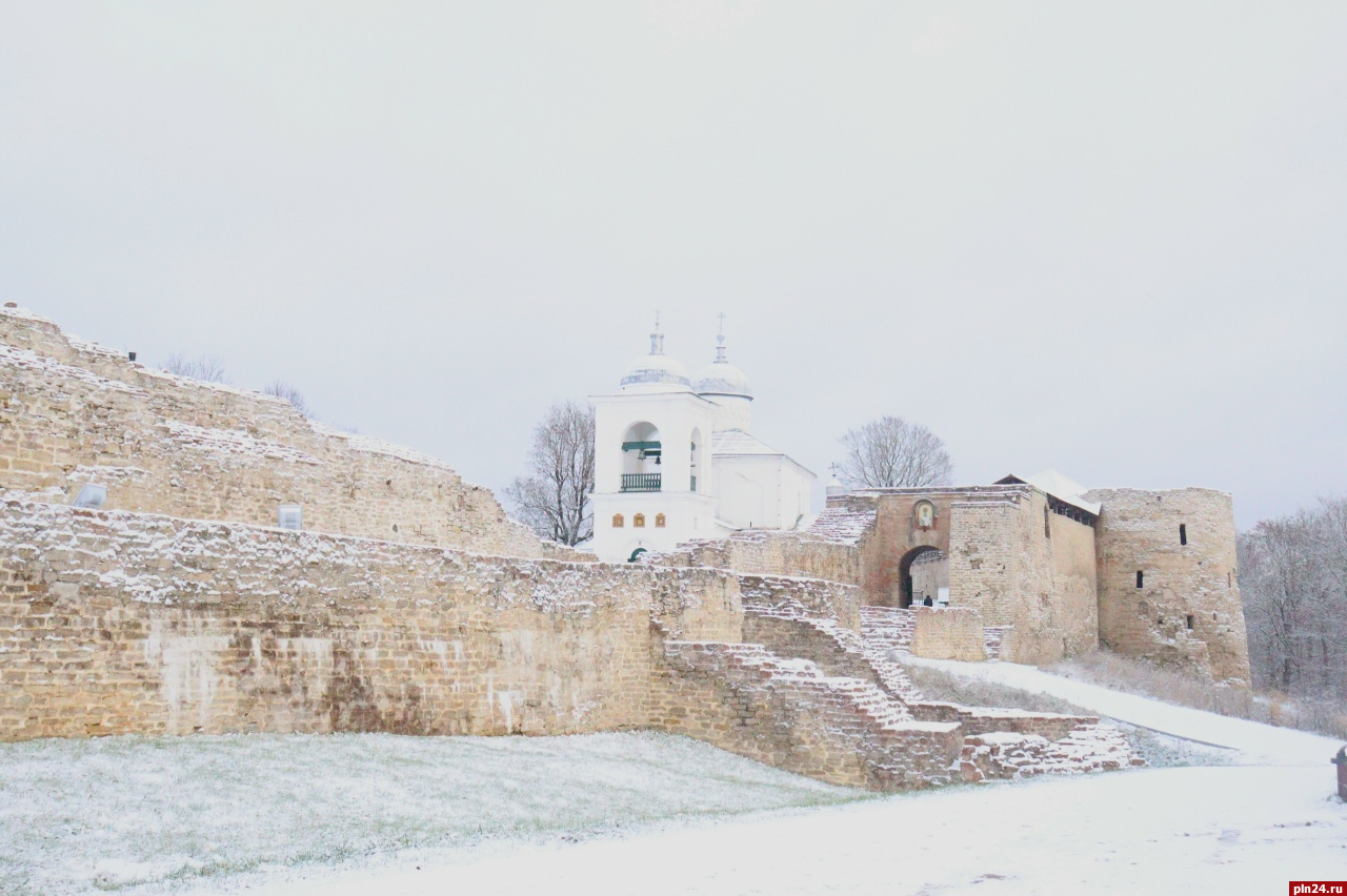 В музее-заповеднике «Изборск», колыбели российской государственности, выпал первый снег. Белый покров мягко лег на легендарные камни Труворова городища, башни древней Изборской крепости и купола Никольского собора, превратив территорию заповедника в живую картину русской истории.