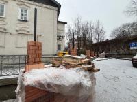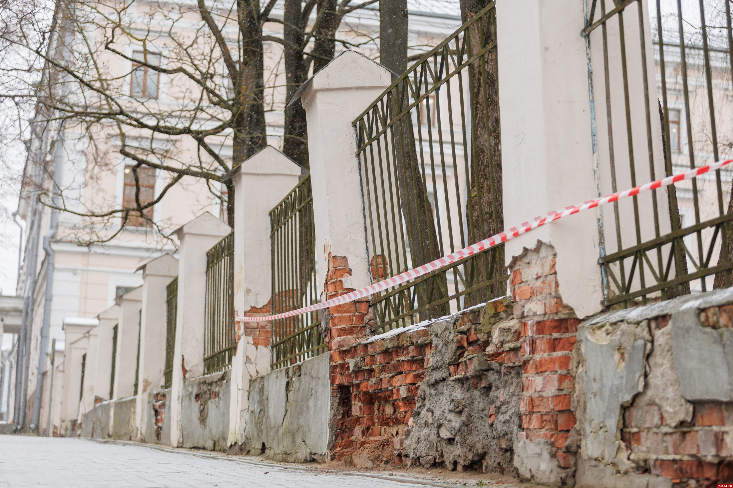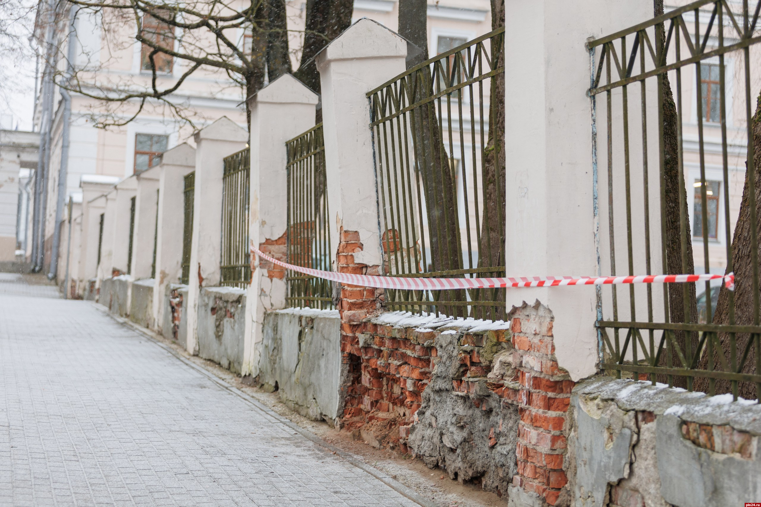 «Но дело в том, что наш забор претерпел три больших, глобальных преобразования. В 2010 году ремонтировали, вели коммуникации к церкви, поэтому копали. В 2015 году церковь Георгия со Взвоза восстанавливали полностью после войны. Там были деревянные трубы для водоотведения, и поэтому поднимали и делали качественно дорогу. Соответственно, здесь укладывали тротуар, у нас брусчатка была раньше, мы ходили по рельсам, шпалам в 80-х годах в школу, когда я здесь училась. И, конечно, в 2020 году, когда восстанавливали центр туризма, как раз под этой частью забора вели коммуникации. Поэтому наш забор не выдержал», — сказала Наталья Ломонова.