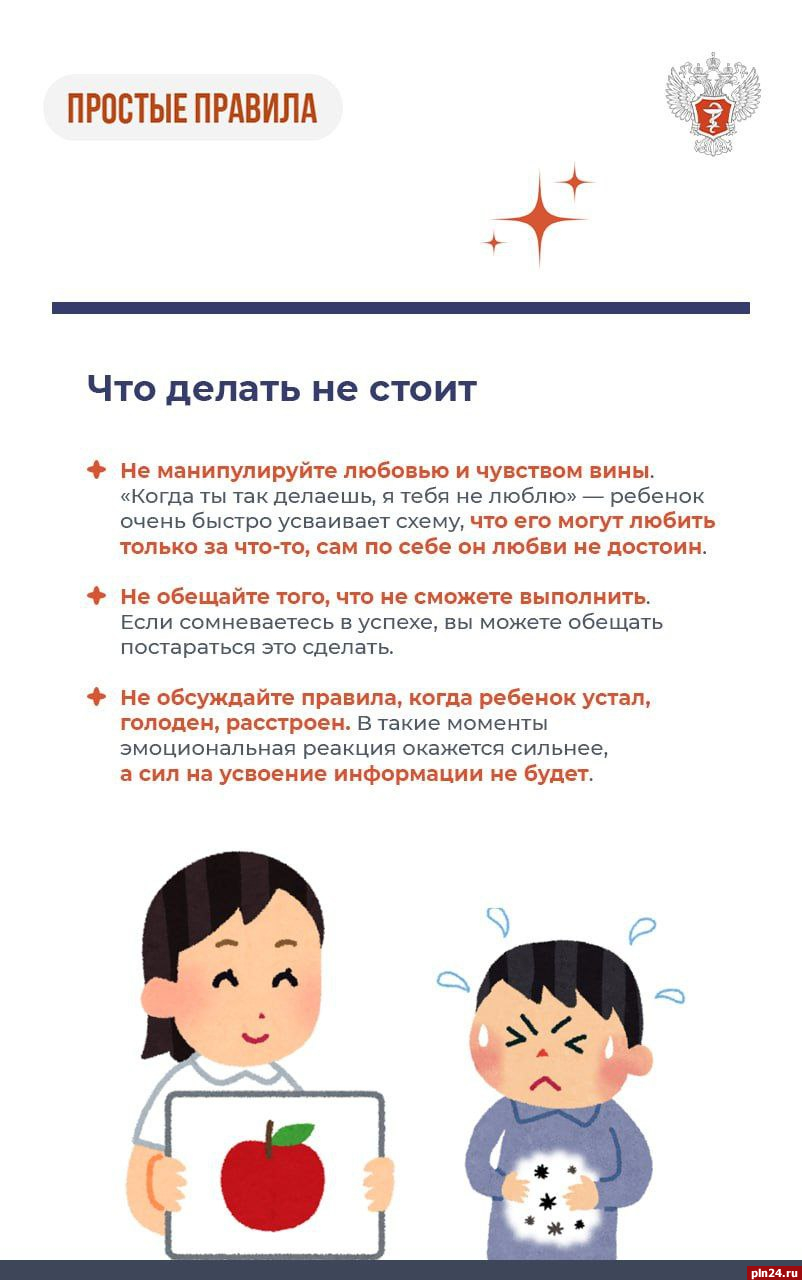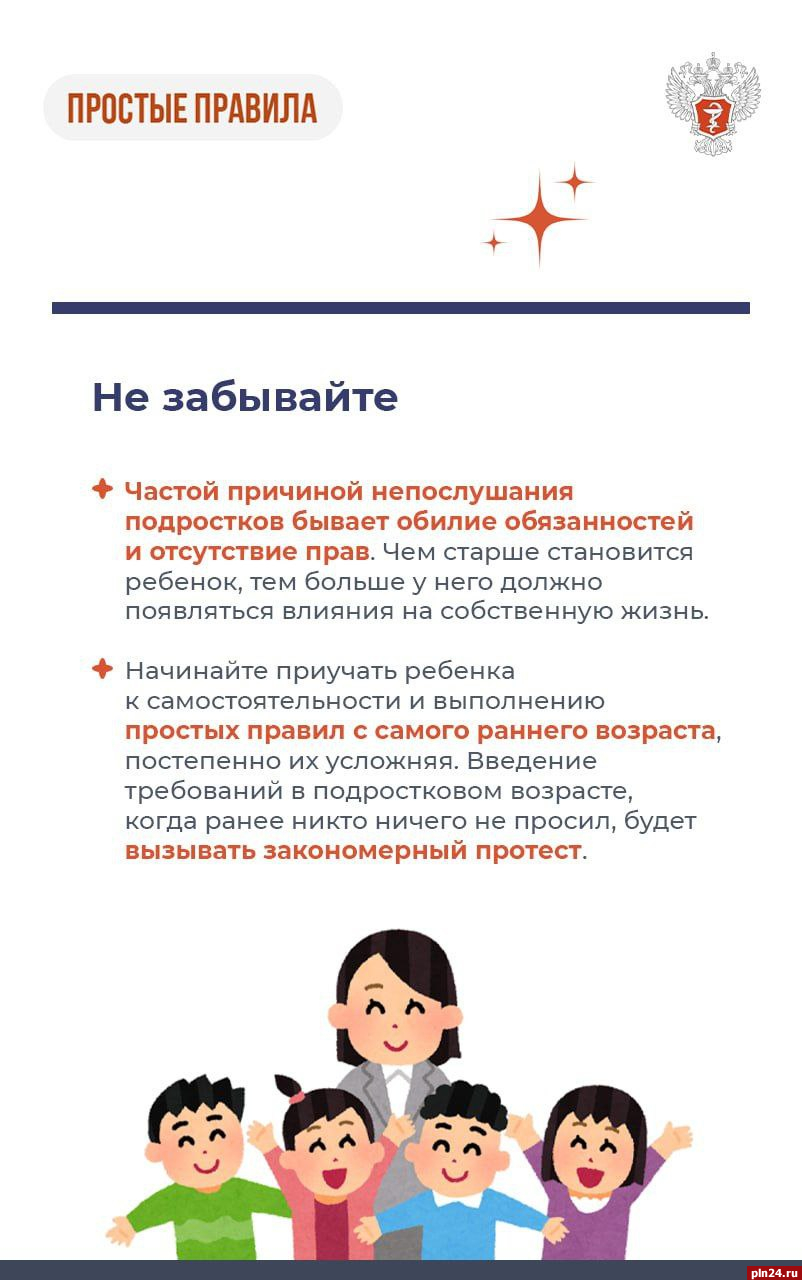 Оценивайте поступок, а не личность. Не "ты злой", а "когда ты так делаешь, другим обидно". Начинать введение требований в подростковом возрасте, когда ранее никто ничего не просил, будет вызывать закономерный протест. Своевременное и грамотное выстраивание общения поможет сохранить доверительные и теплые отношения на долгие годы», - добавили в министерстве.
