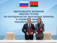 Затем состоялось 11‑е заседание Рабочей группы по сотрудничеству между Республикой Беларусь и Псковской областью Российской Федерации под председательством губернатора Михаила Ведерникова и заместителя премьер-министра Республики Беларусь Натальи Петкевич. В ходе встречи было отмечено ежегодное увеличение товарооборота между Республикой Беларусь и Псковской областью, а также развитие совместных проектов в различных сферах, для реализации которых с каждым годом находятся всё новые и новые подходы.