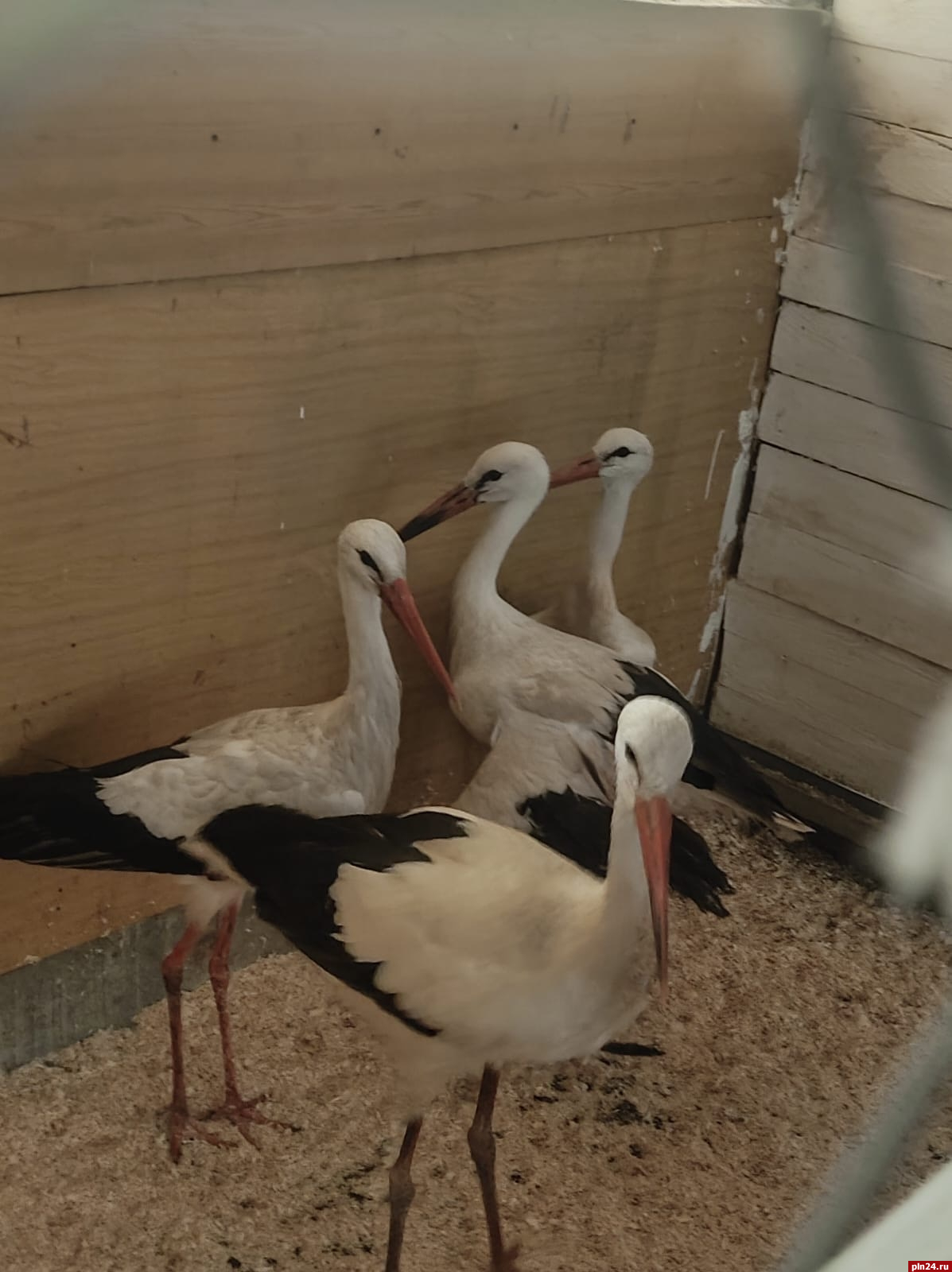Молодых аистов переселили в тепло до весны в псковском подворье «Птичий дворик», сообщили Псковской Ленте Новостей в подворье.