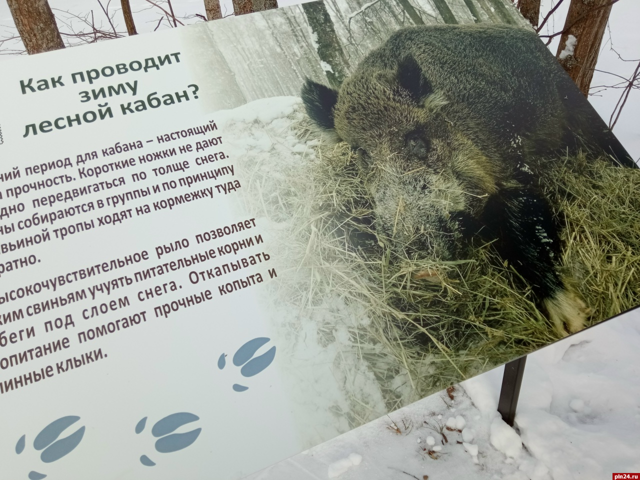 Узнать больше о кабане и других зимующих зверях Изборско-Мальской долины можно на тропе к Словенским ключам, где установлены яркие информационные стенды.
