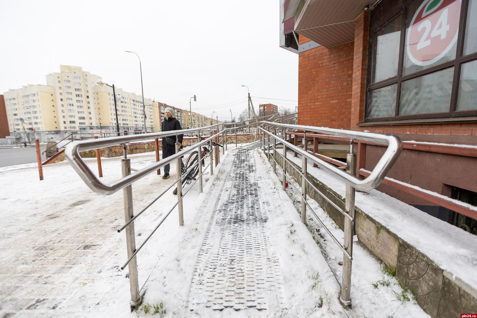 До определенного времени, в том числе и в Псковской области, их установка была либо необязательной, либо в недостаточной степени контролировалась. Да и сегодня нормам соответствуют далеко не все пандусы даже в областной столице — городе Пскове. Некоторые из них скорее призывают: «Попробуй, взберись на меня». К счастью, есть и другие примеры — пандусы, которые сделаны по всем правилам, как того требует закон.