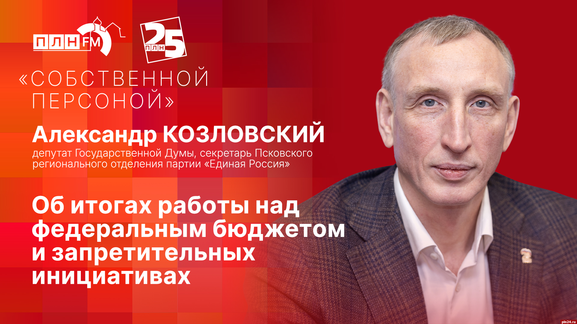 Ведущий Максим Костиков обсудит с ним широкий круг вопросов — от итогов работы над федеральным бюджетом-2026 до свежих запретительных инициатив. Как Александр Козловский в целом оценивает федеральный бюджет на 2026 год? За счет чего можно было бы пополнить бюджет, чтобы не залезать в карман граждан? Что происходит с российской экономикой в целом и с предприятиями Псковской области? Чем вызвана ротация в президиуме политсовета Псковского регионального отделения «Единой России»?