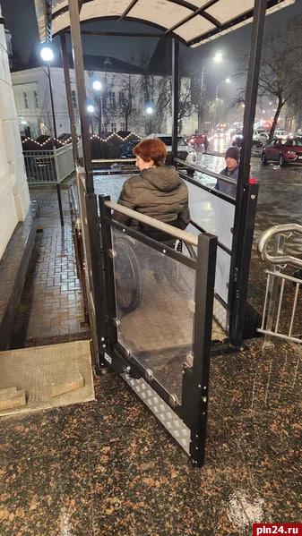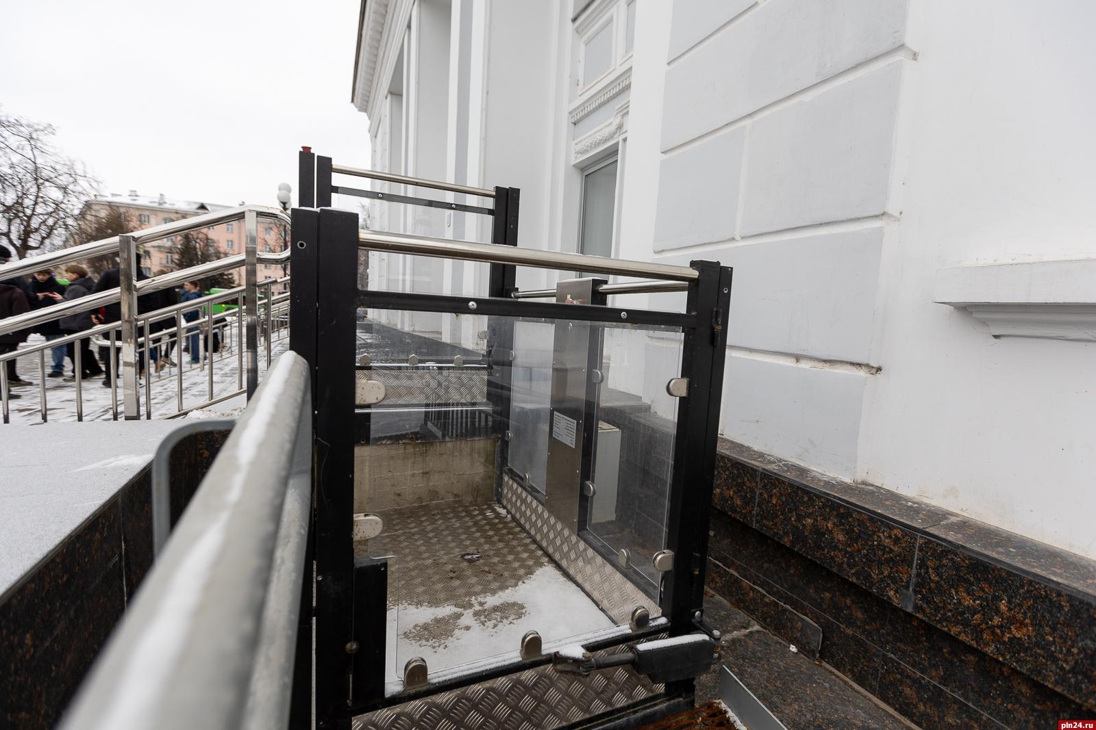 Проблемы с этим объектом подтверждает и заместитель председателя Псковской областной организации Всероссийского общества инвалидов, директор АНО Региональный экспертный центр «Доступная среда» Эдуард Малин: «Проект мы очень долго согласовывали, подключались все эксперты. Мы предлагали проектировщикам сделать пандус, который должен был уходить направо и за угол, для того, чтобы он не бросался в глаза. Пандус более удобен в эксплуатации, потому что он не требует какого-то технического супердорогого обслуживания. Но нам предложили такой вариант, как подъемная платформа. Однако во время предварительной проверки перед запланированной приемкой она три раза застревала вместе с человеком на платформе. Ее обещали демонтировать и убрать».