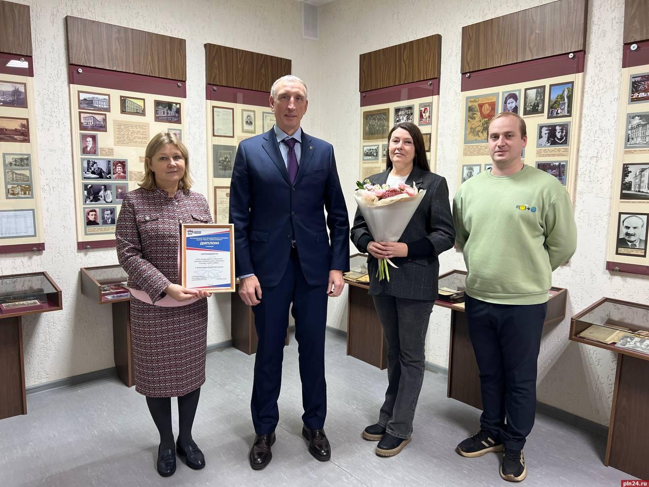 «На федеральном уровне Музей вошёл в число призёров, получив диплом третьей степени, и выиграл грант на развитие экспозиции. Средства будут направлены в том числе на покупку выставочного оборудования. Сертификат на грант вручил на недавнем Форуме муниципальных депутатов в Пскове», - рассказал Александр Козловский.