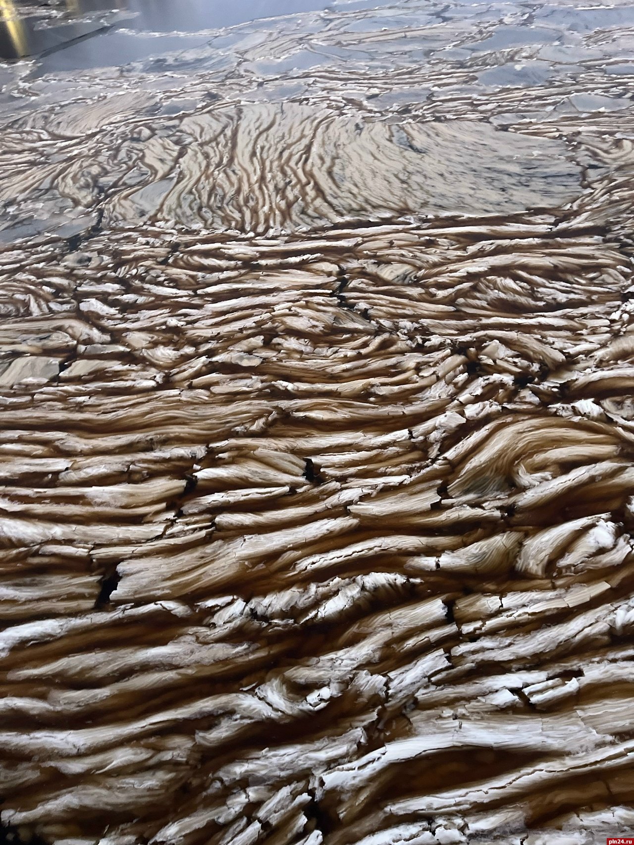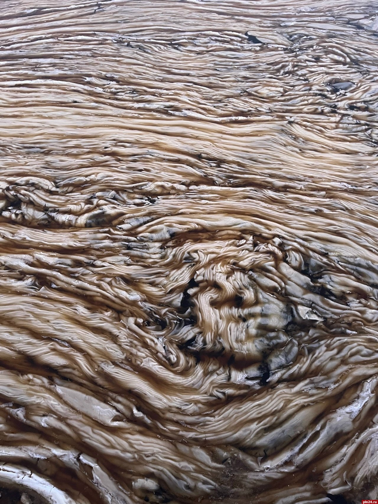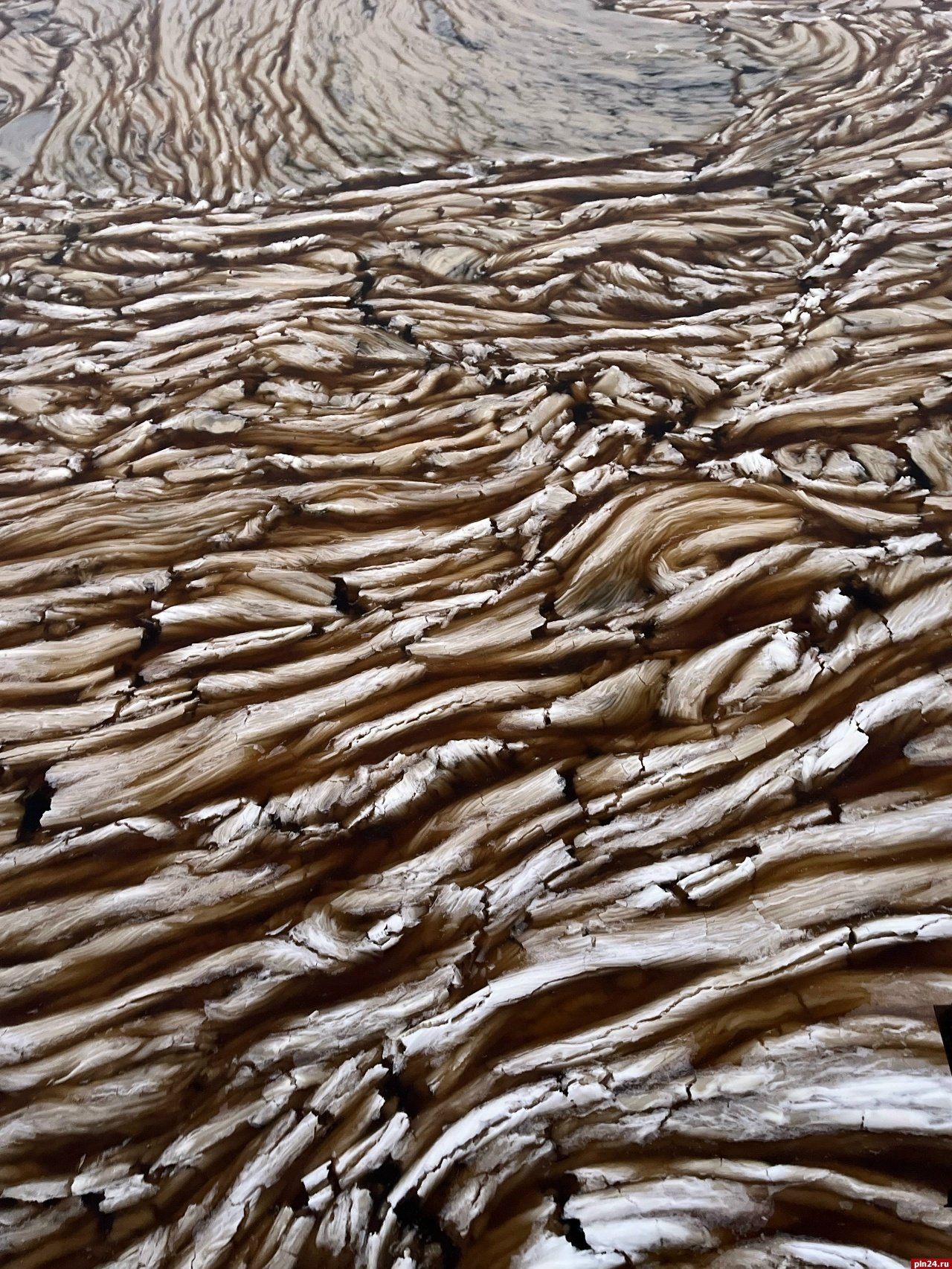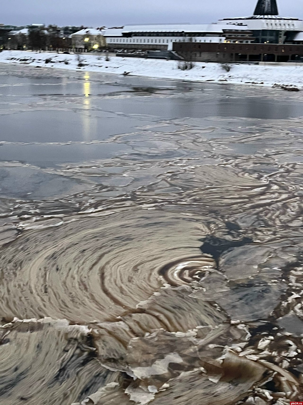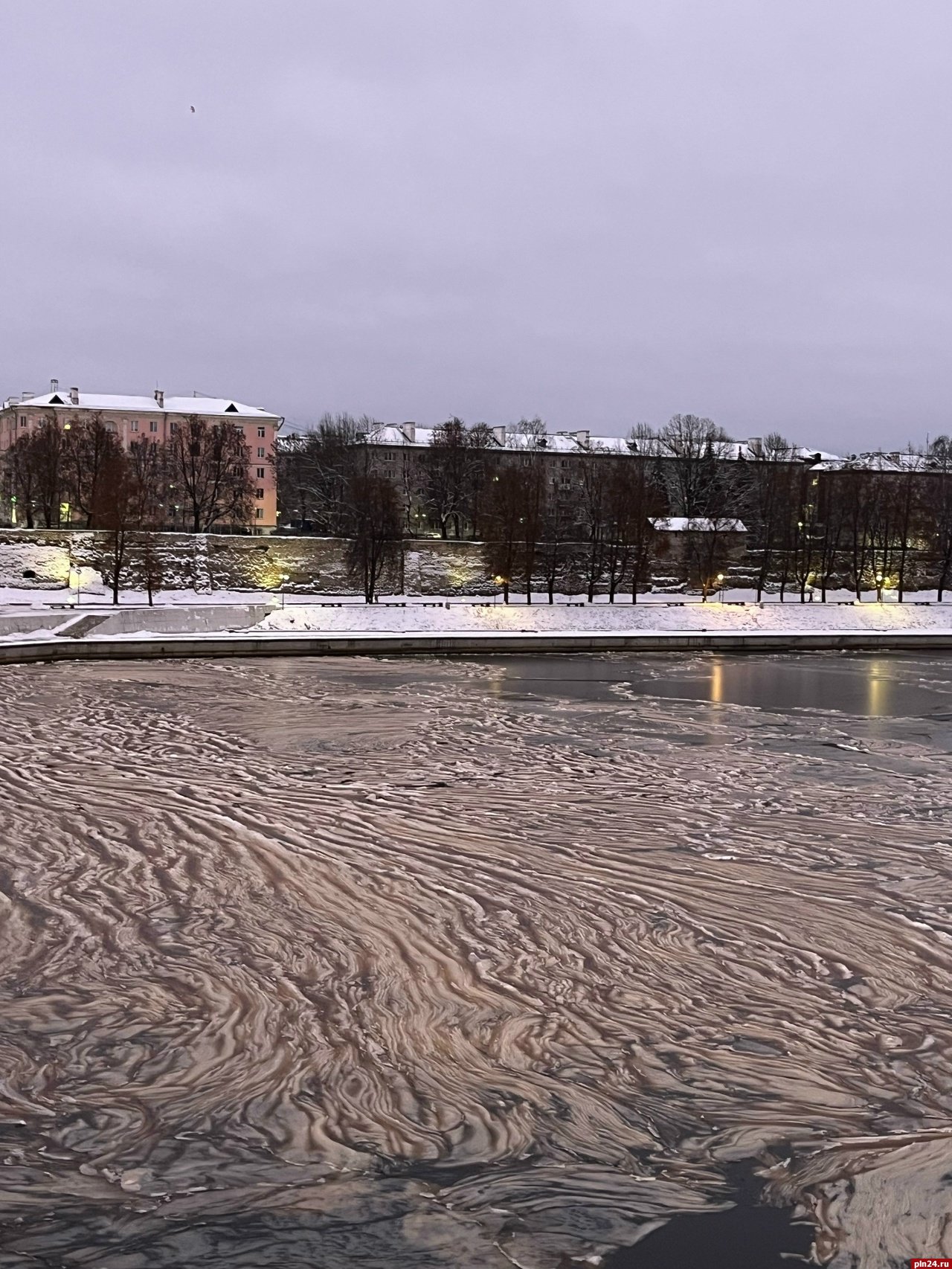 На поверхности реки Великой в Пскове совсем скоро может встать лед, а пока выпавший снег создает на открытой воде удивительные узоры, передает корреспондент Псковской Ленты Новостей.