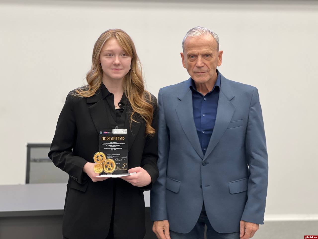 Виктория Зарецкая из «Кванториума Псков» одержала победу в номинации «Социальное изобретение» с проектом «Техногорье», а Владимир Острейко из ЗАО «ЗЭТО» выиграл в номинации «Научное исследовательское достижение».