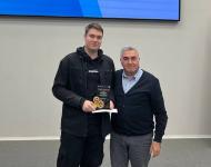 Олег Мараков из «Псков-Полимер» получил главный приз в категории «Лучший изобретатель без оформленного патента» за автоматическую гильотину для раскроя бумаги.