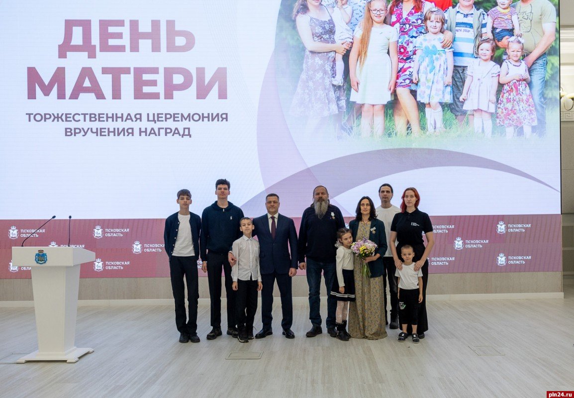 Торжественное вручение государственных и региональных наград многодетным семьям состоялось в правительстве Псковской области в честь Дня матери сегодня, 30 ноября. С праздником собравшихся мам поздравил губернатор Псковской области Михаил Ведерников. Об этом Псковской Ленте Новостей сообщили в пресс-службе правительства Псковской области.