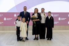 Вручение наград состоялось в теплом и семейном кругу. За заслуги в укреплении института семьи и воспитании детей звание «Мать-героиня» присвоено матери десяти детей из Дедовичского округа Татьяне Васильевой.