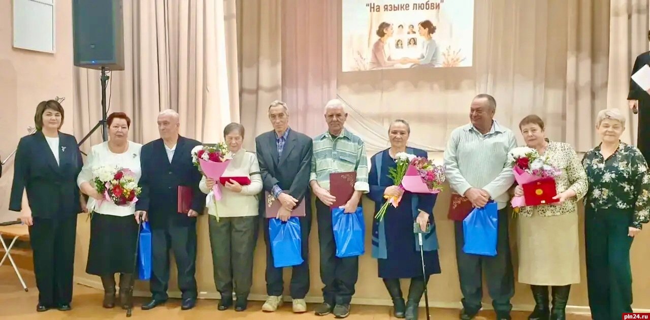 Семейные пары, отметившие 50 и 55 лет совместной жизни, поздравили в ходе торжественных мероприятий ко Дню матери. Об этом пишет глава Псковского округа Наталья Федорова в соцсети ВКонтакте.
