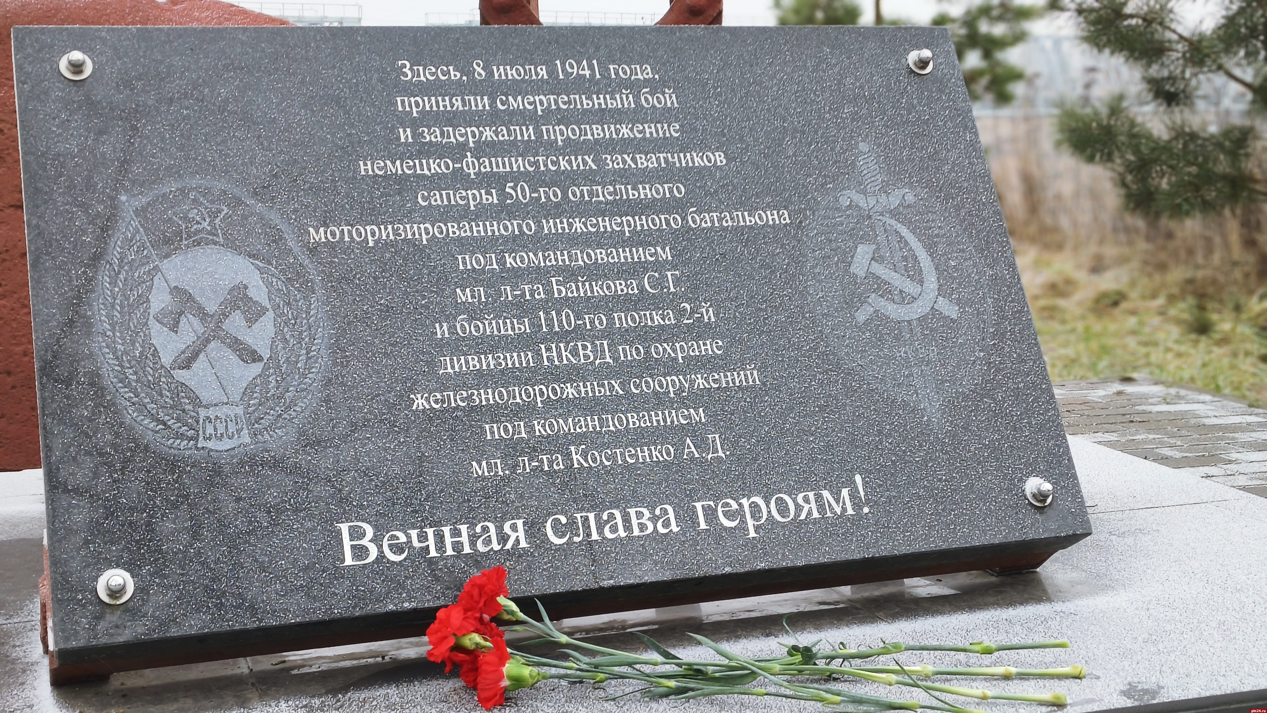 Памятный знак установлен в честь бойцов 110-го полка 2-й дивизии НКВД по охране железнодорожных сооружений и также воинов-сапёров 50-го отдельного инженерного батальона. Эти герои ценой собственных жизней остановили продвижение немецко-фашистских захватчиков под Псковом, проявив исключительное мужество и самоотверженность.