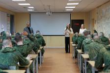 После прохождения теста военнослужащие вместе с членами Молодёжного парламента обсудили, какие вопросы показались наиболее интересными или вызвали затруднения.