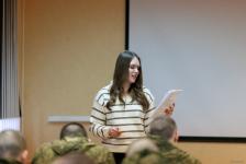 «Пока вы делаете первые шаги в изучении военного дела, но уже принадлежите к особой профессиональной категории — военнослужащим. Это люди, которые защищают интересы нашей страны и заботятся о безопасности государства. Так же, как и бойцы-герои Великой Отечественной войны, вы сегодня стоите на страже интересов будущих поколений».