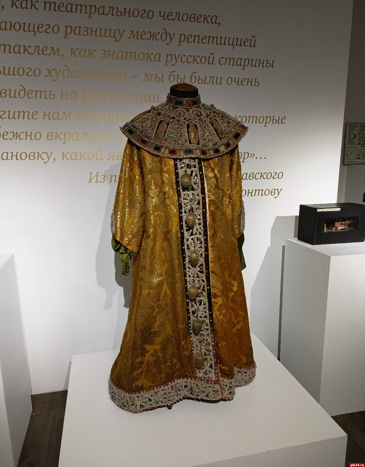Мы показываем костюмы, бутафорию, макеты спектаклей, эскизы костюмов и декораций, и всё это богатство, опять-таки, сохранилось благодаря Константину Сергеевичу, который, помимо прочего, был еще и великим архивистом. Например, мы представляем не только костюмы и бутафорию из спектакля «Много шума из ничего», который шел на сцене Общества искусства и литературы, но у нас есть костюм из Алексеевского кружка, и макеты спектаклей, которые делал сам Константин Сергеевич. А у музея-заповедника «Абрамцево» есть скульптуры, созданные Саввой Ивановичем».