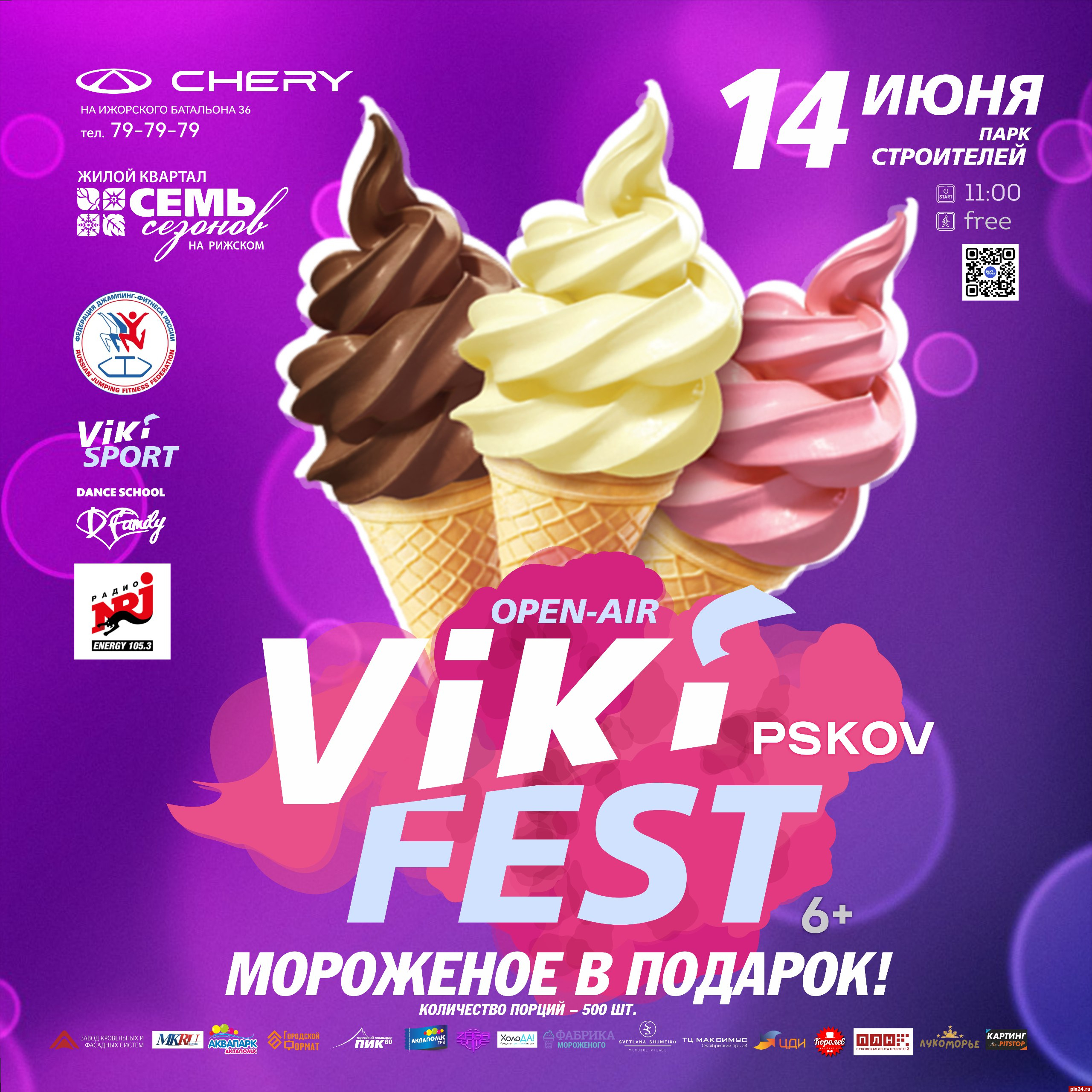 «Вики-фест» пройдет в формате OPEN-AIR в парке строителей в 11.00. В рамках фестивальной программы всем юным гостям праздника будут выдавать мороженое от партнера ГК «Мега холод» и «Фабрики мороженого». Организаторы запланировали раздать 500 порций охлаждающего лакомства в парке строителей.
