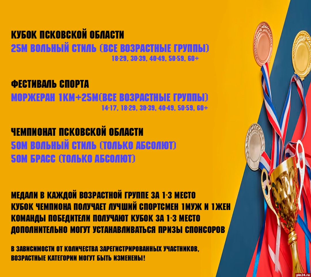 Церемонию награждения организаторы проведут в 16:00. Ожидается участие около 100 спортсменов и любителей из 18 городов России и участников из Сербии и Индии; в соревнованиях выступят команды из Пскова, Великих Лук, Санкт-Петербурга, Петрозаводска, Великого Новгорода, Всеволожска, Кирова, Соснового Бора и Кингисеппа, а также коллективы «Федерация зимнего плавания Псковской области», «Драфт», «Воприки», «Динамика», «Бегипотраве», «Северная ходьба Палки».