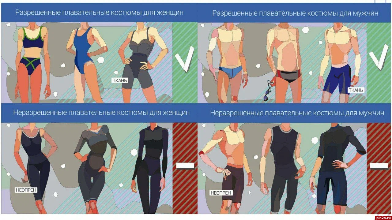 Запрещаются любые утепляющие средства и неопреновые гидрокостюмы, разрешаются обычные плавки и купальники или гидрошорты и купальники из ткани с допуском FINA . Плавательная шапочка допускается из любого материала. Нарушение правил приводит к аннулированию результата.
