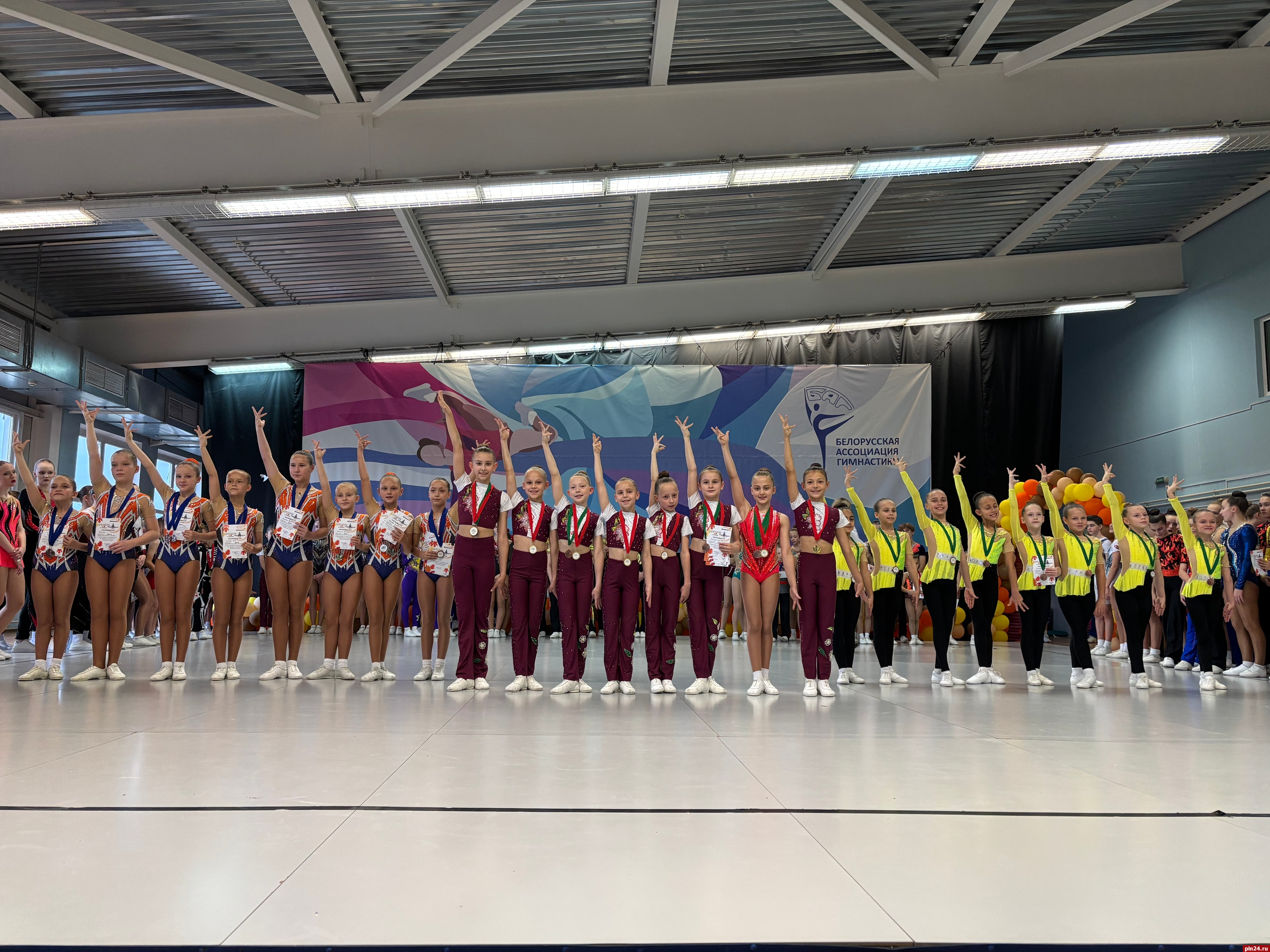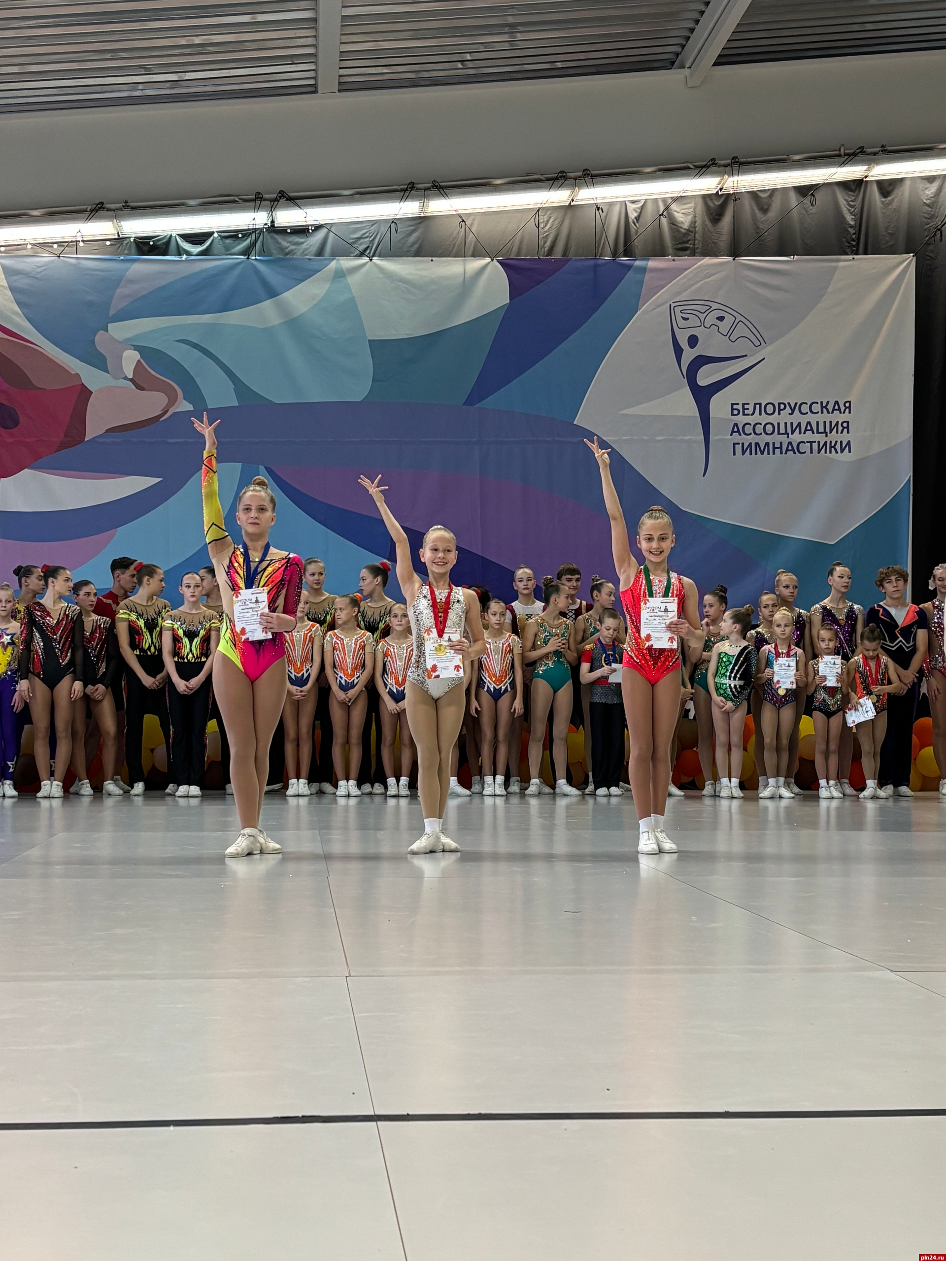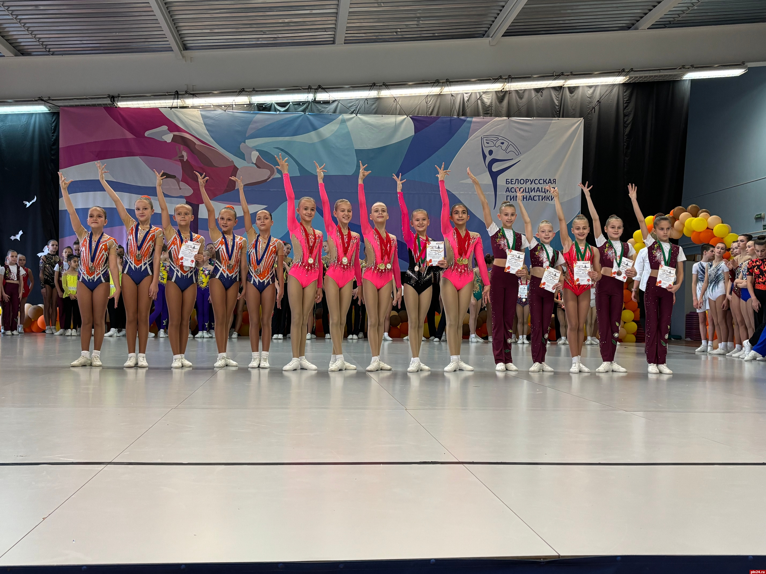 Воспитанники псковской спортивной школы «Бригантина» заняли первые места на международных соревнованиях по спортивной аэробике «Аэроосень-2025», которые прошли 31 октября - 2 ноября в Минске, сообщили Псковской Ленте Новостей в спортивной школе.