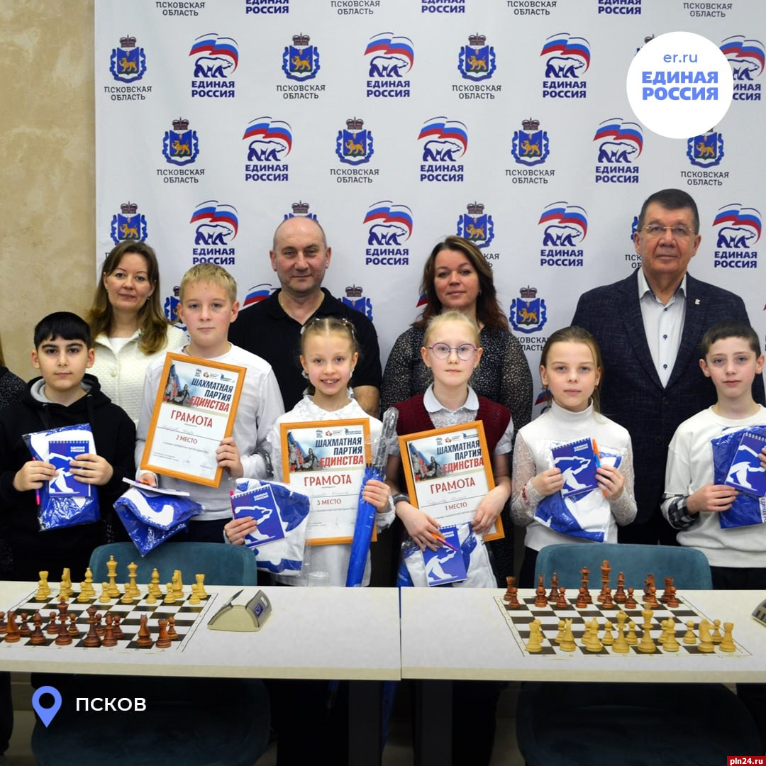 В Пскове прошел шахматный турнир «Шахматная партия единства», сообщили в Telegram-канале «Единая Россия. Псковская область». Состязание организовали в рамках всероссийской акции шахматных клубов Сергея Карякина совместно с партией «Единая Россия».