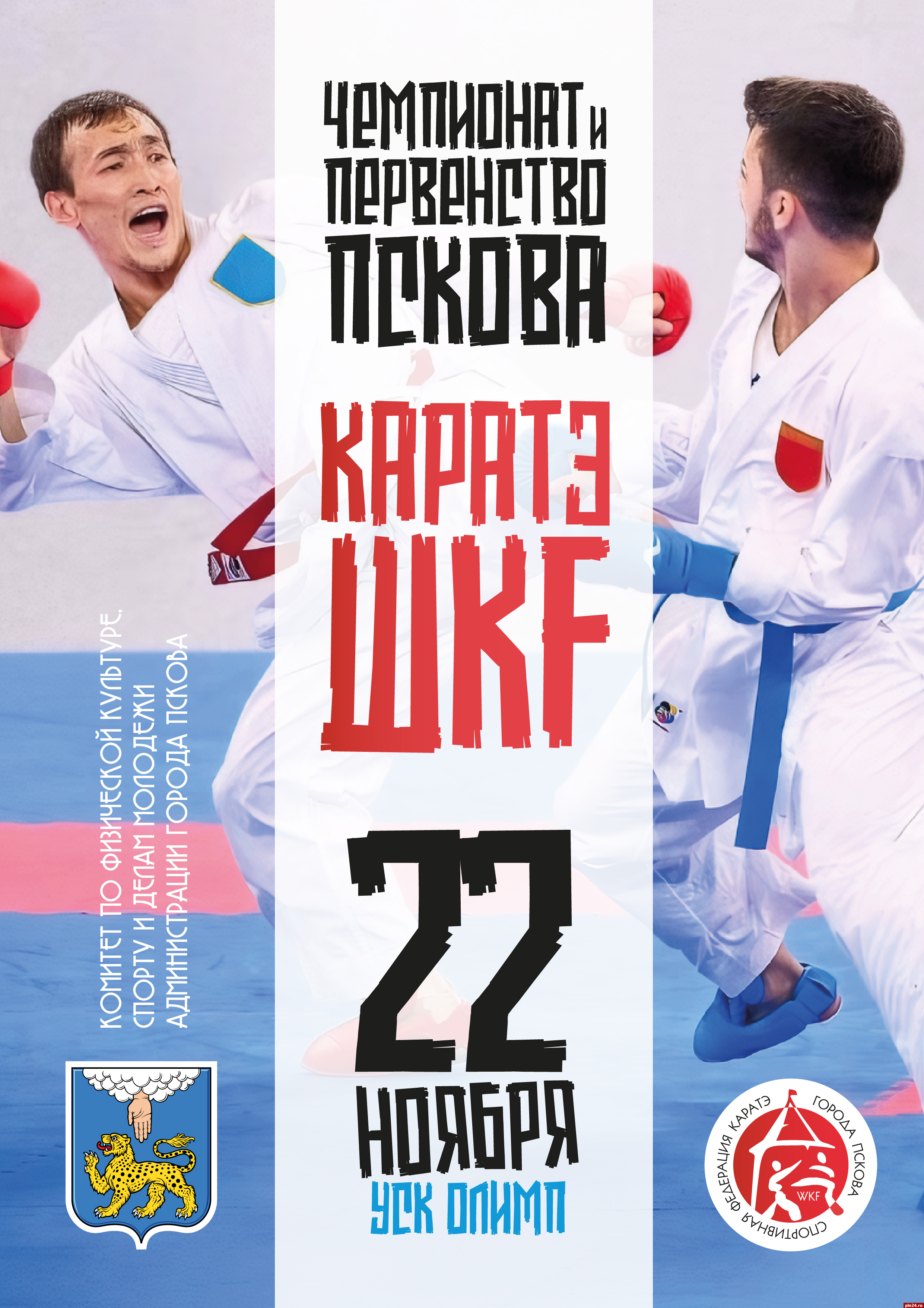 Согласно календарного плана комитета по физической культуре, спорту и делам молодежи администрации города Пскова и спортивной федерации карате города Пскова, 22 ноября пройдут чемпионат и первенство города Пскова по карате WKF, сообщил Псковской Ленте Новостей председатель спортивной федерации карате города Пскова Антон Потебня.