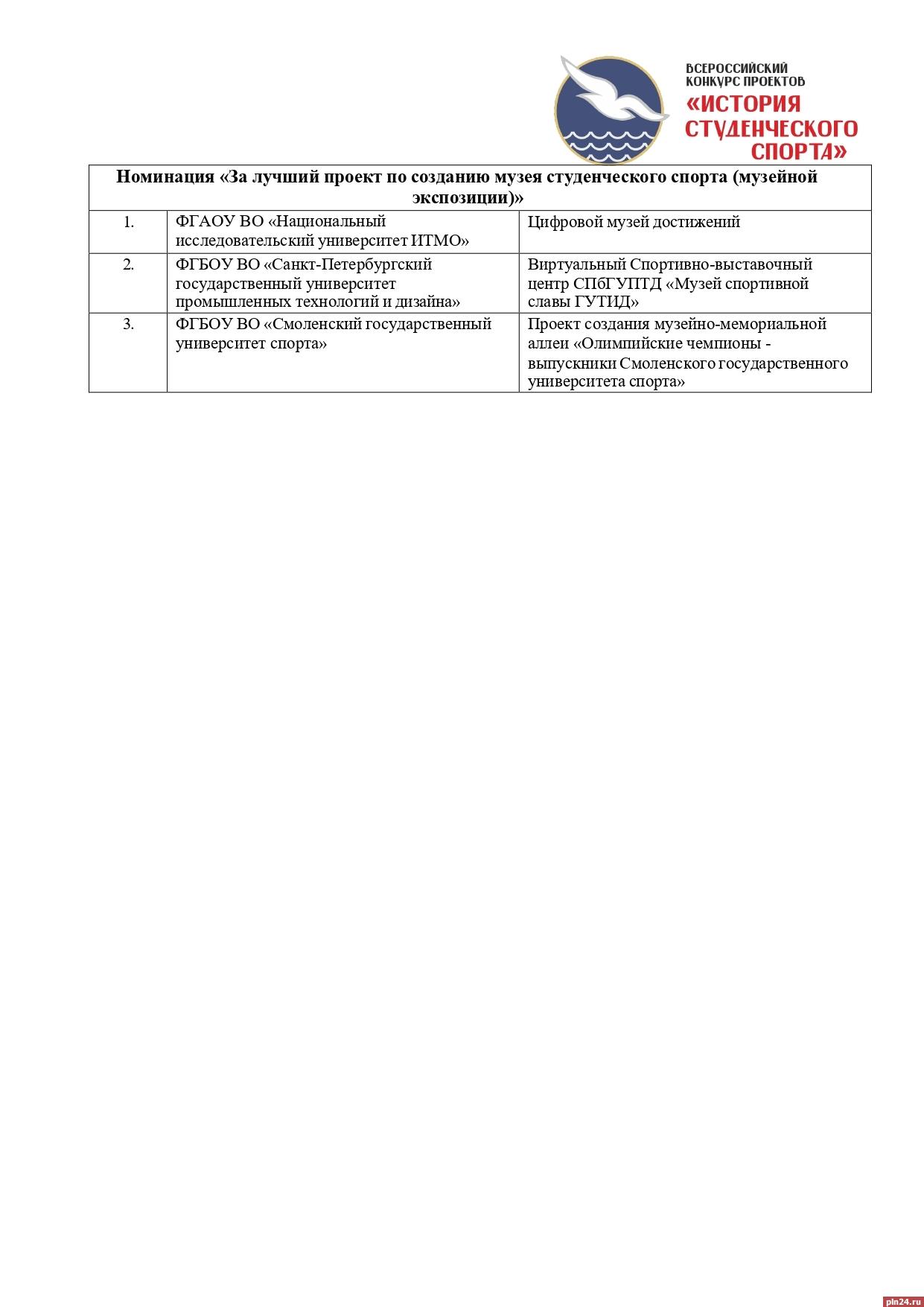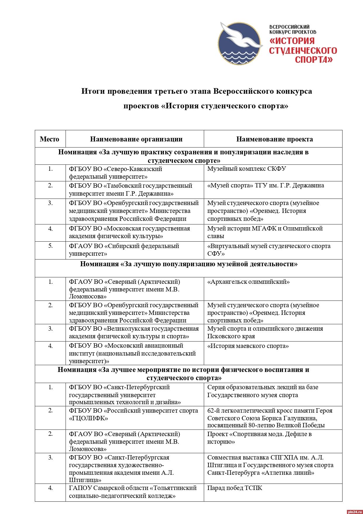 Музей спорта Псковского края стал призёром всероссийского конкурса «История студенческого спорта», сообщили Псковской Ленте Новостей в музее.