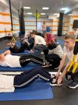 В рамках тренировки участники делали берпи, пресс, упражнения с канатами и кардио, а в конце провели первенство по прессу среди мальчиков и девочек.
