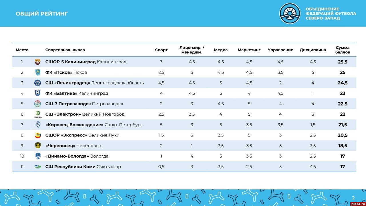 Футбольный клуб «Псков» занял 2-е место рейтинге лучших спортивных школ 2025 года, сообщили Псковской Ленте Новостей в клубе.