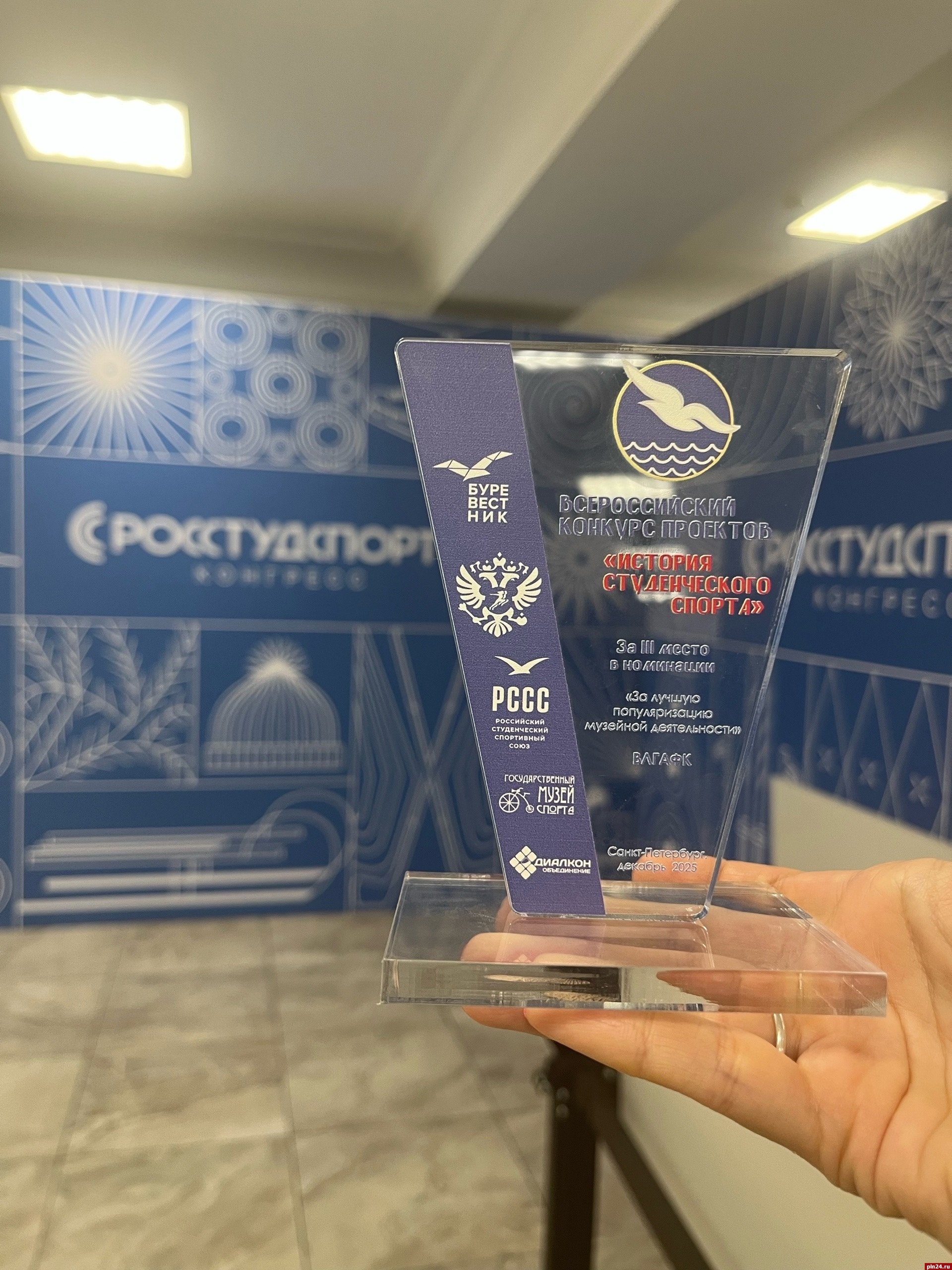 В рамках Конгресса «Росстудспорт»–2025 прошло награждение победителей и призеров Всероссийского конкурса проектов «История студенческого спорта». Музей спорта и олимпийского движения Псковского края занял третье место в номинации «За лучшую популяризацию музейной деятельности». Об этом Псковской Ленте Новостей сообщили в музее.