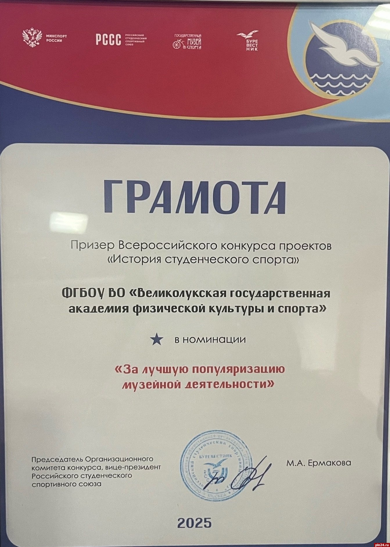 Напомним, что в 2024 году музей спорта Псковского края стал победителем в номинации «Лучшее просветительское мероприятие», а в 2023 году занял второе место в номинации «Лучшая экспозиция по истории студенческого спорта».