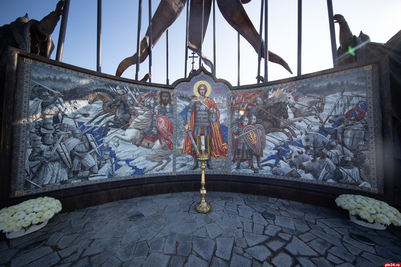 Следующая точка маршрута - мемориальный комплекс «Князь Александр Невский с дружиной», открытый 11 сентября 2021 года.