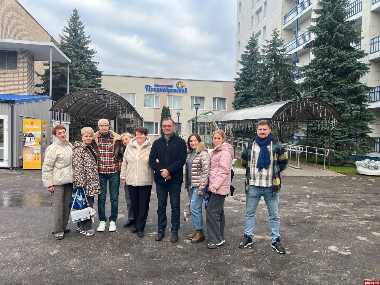 Делегация сотрудников профсоюзного санатория «Хилово» во главе с директором Григорием Коратаевым и главным врачом Женей Дудченко посетила здравницы братской Республики Беларусь с рабочим визитом, сообщили Псковской Ленте Новостей в Псковском областном совете профсоюзов.