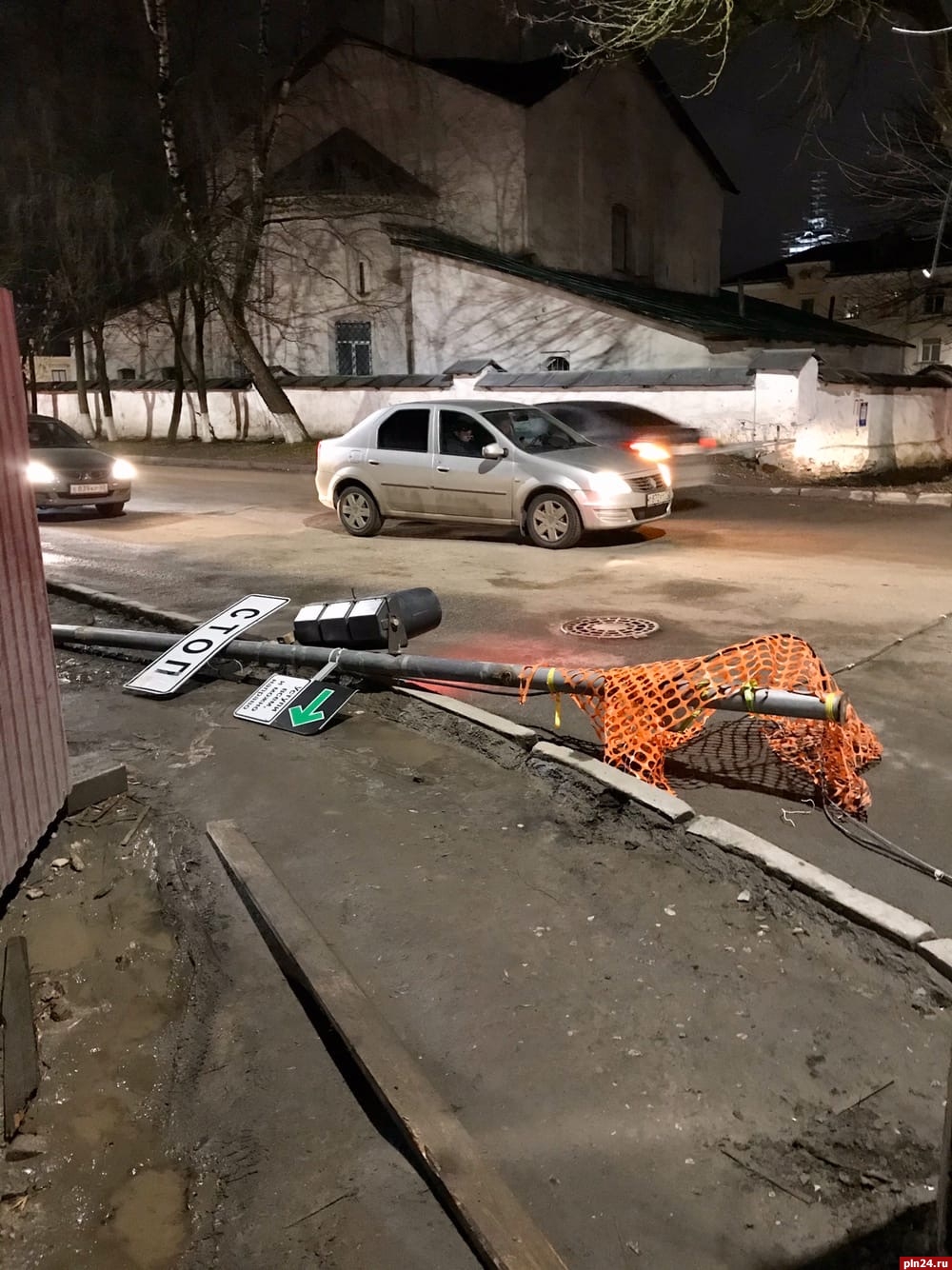 Вечером во вторник, 28 января, был сбит временный светофор на улице Труда в Пскове.