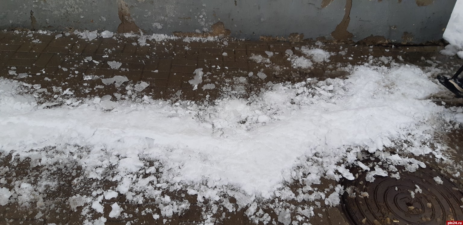 Начавший таять снег упал с крыши здания Псковской городской Думы на улице Некрасова на женщину в инвалидной коляске. Об этом сообщается в группе «Жесть по-псковски» в социальной сети «ВКонтакте».