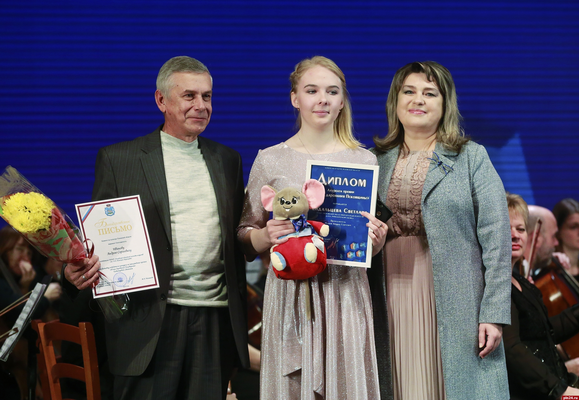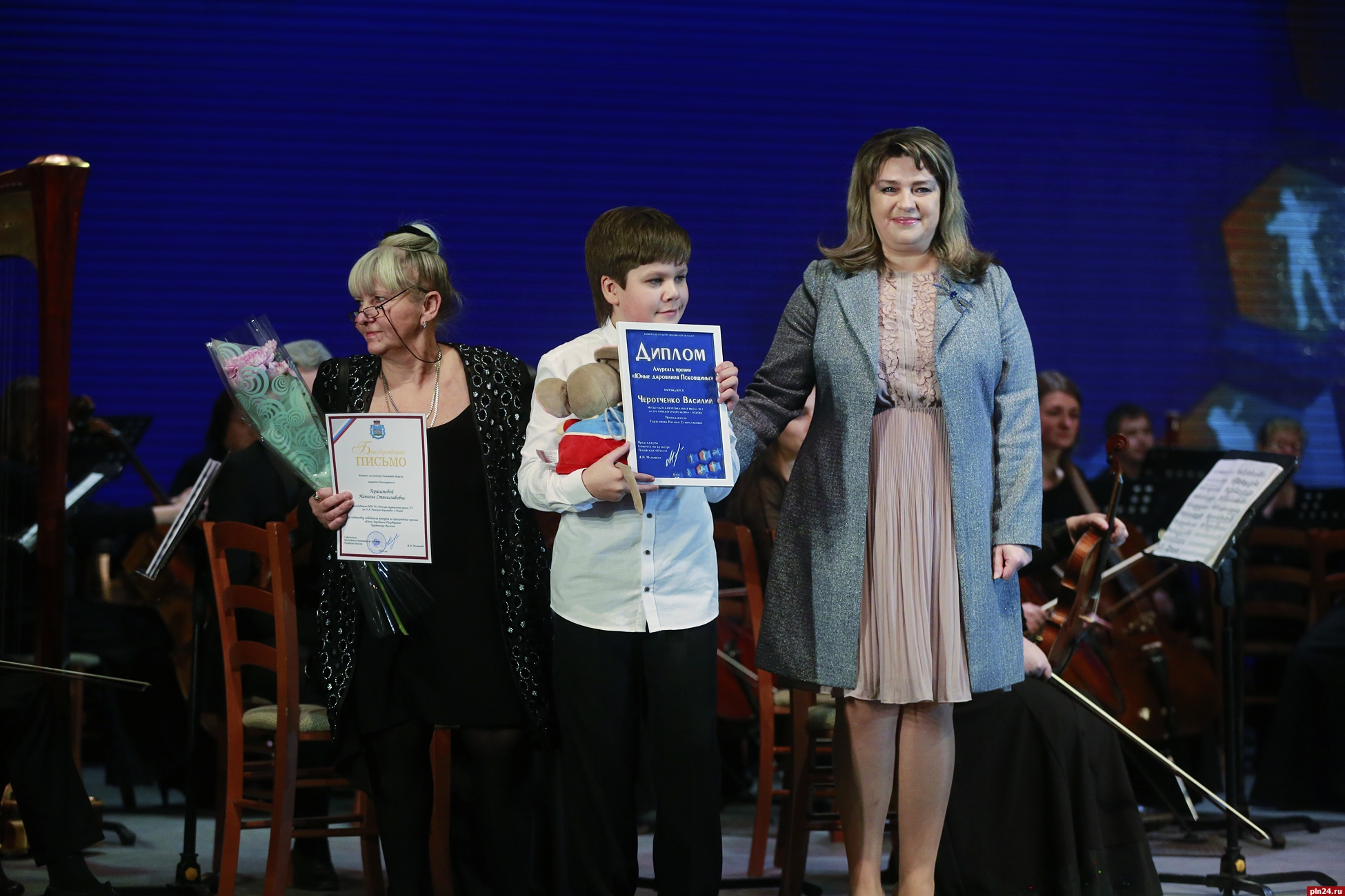 По сложившейся традиции в рамках концерта прошло награждение дипломами и сертификатами лауреатов ежегодной премии «Юные дарования Псковщины» и обладателей стипендии губернатора Псковской области.