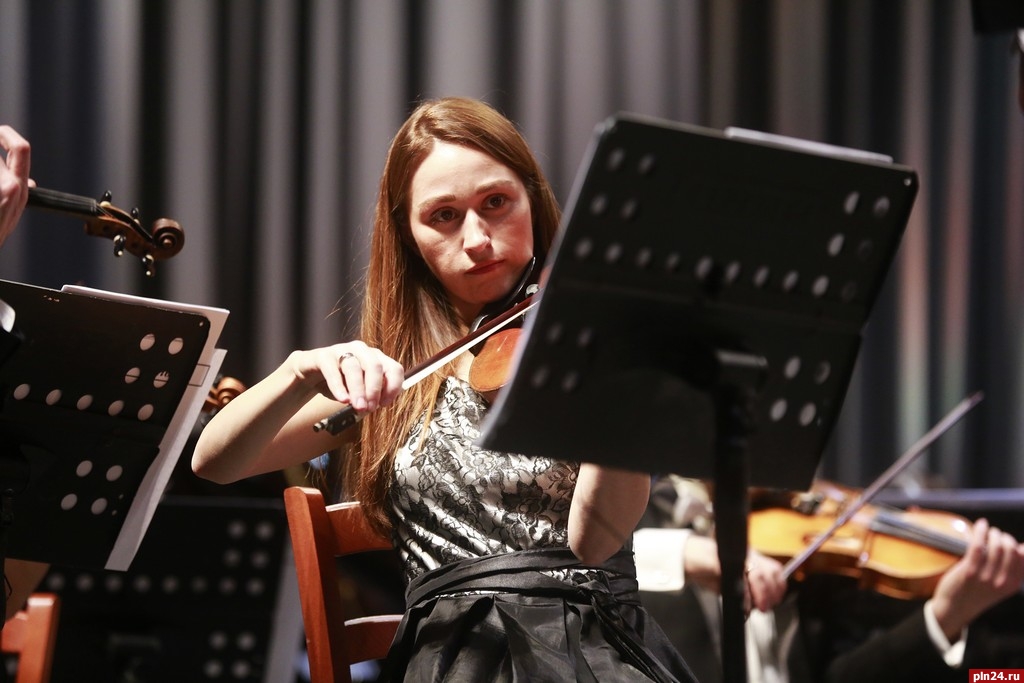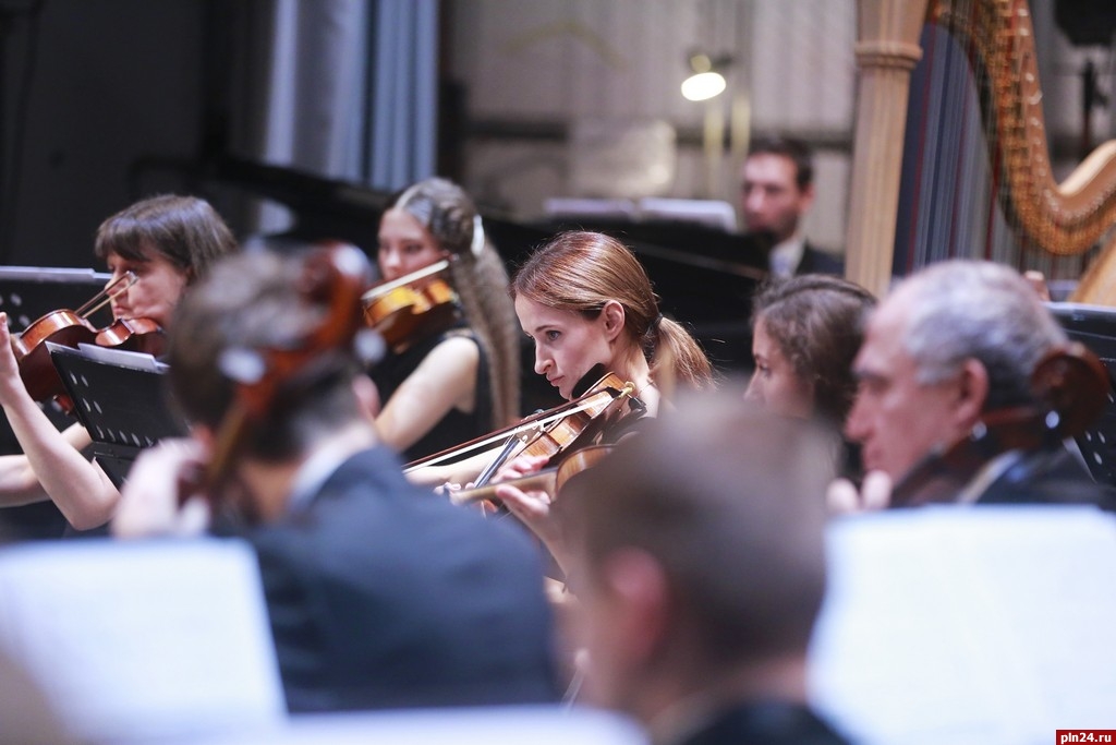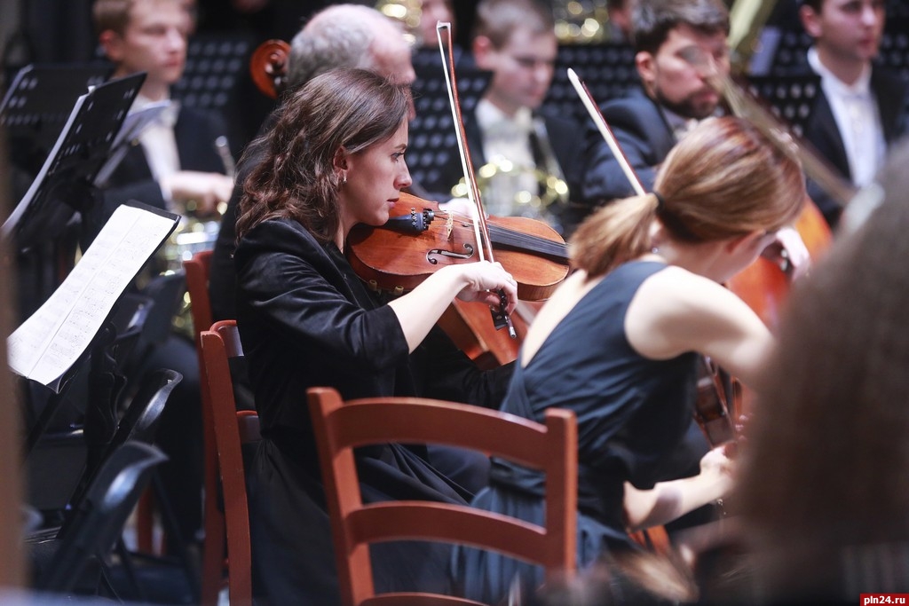 После антракта псковичей ждала тончайшая поэтичная композиция Sospiri («Вздохи») Эдуарда Элгара. Нежные переборы арфы и словно бы зависшие в воздухе звуки скрипок создавали иллюзию «легкого дыхания», грациозного и полного чуткой теплоты.