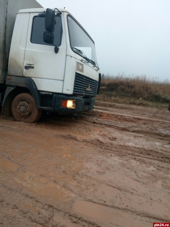 «Это какой-то ужас! Завяз даже «КамАЗ», который вез продукты в наш доблестный город Пыталово. Спасибо местному трактористу, который его вытянул. А нам водитель «КамАЗа» подсказал, что это место люди объезжают по полю, а то мы уже собрались возвращаться», - написала она.