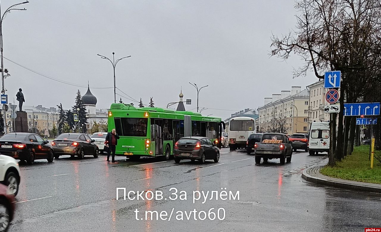 Дорожно-транспортное происшествие произошло на площади Ленина в Пскове 6 ноябре, сообщается в Telegram-канале «Псков. За рулем».