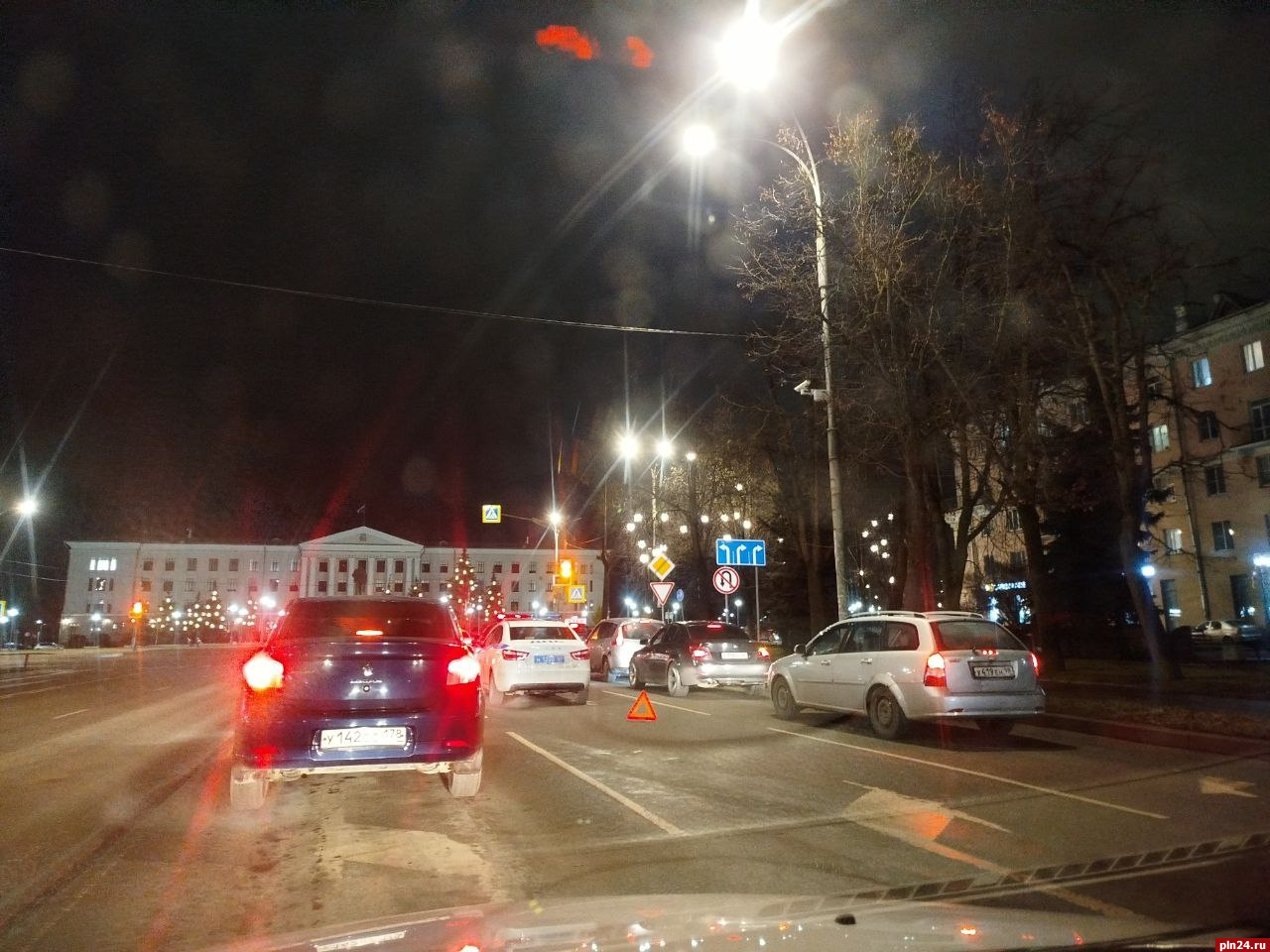 Дорожно-транспортное происшествие затрудняет движение на площади Ленина вечером 21 ноября. Как сообщают Псковской Ленте Новостей очевидцы, столкнулись два автомобиля.